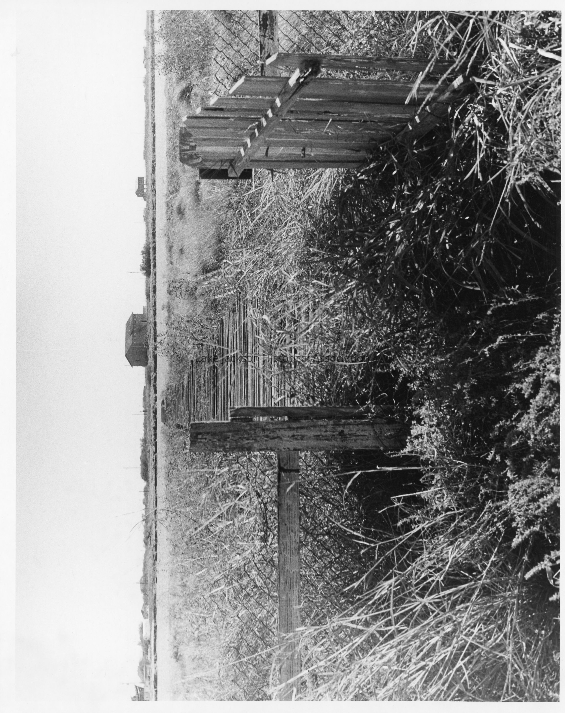 B/W photo of the Brazos River lighthouse deconstruction. A view of the front gate.Collection