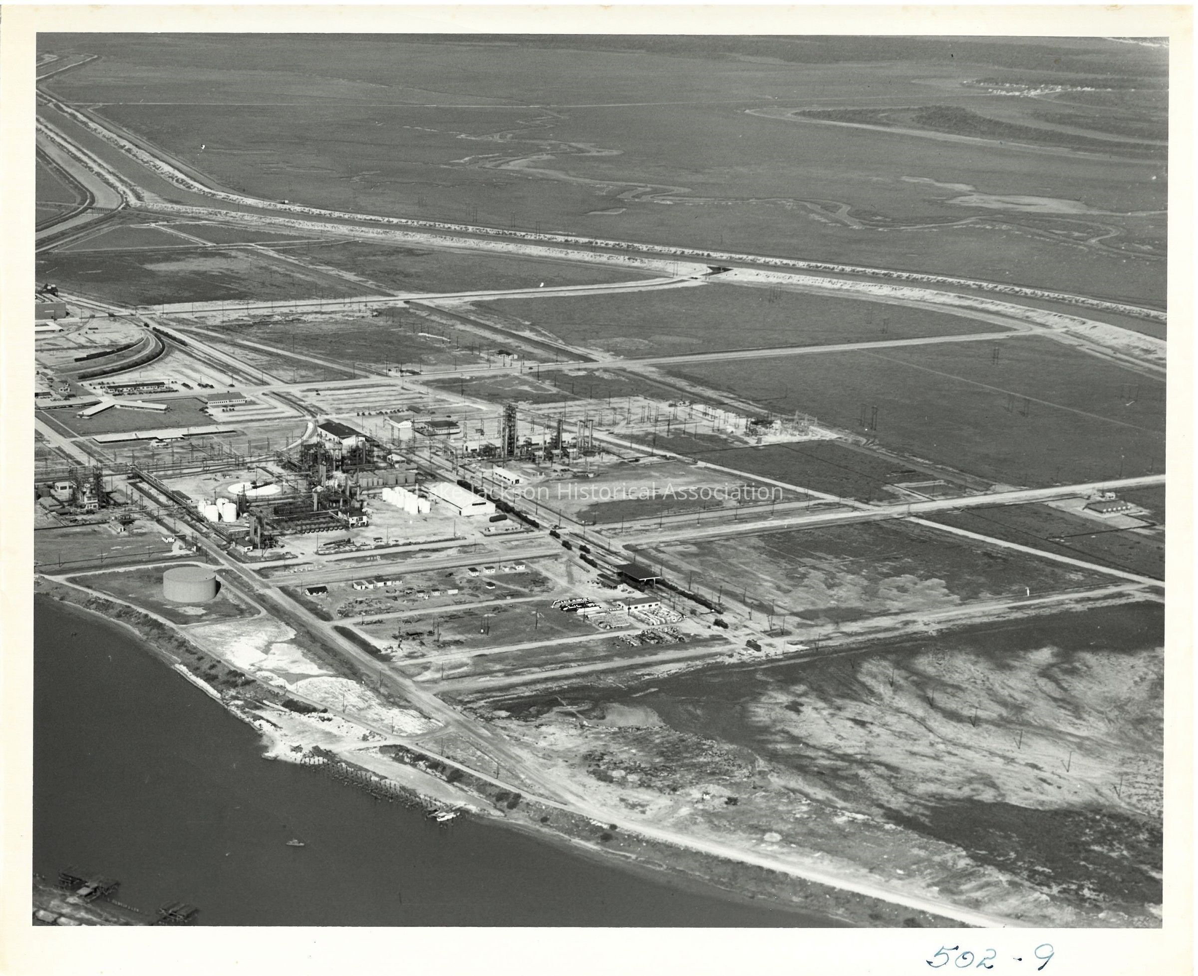 Close up aerial view of the Dow Chemical Company magnesium plant, Plant A in Freeport, Texas. Organic Area - February 19, 1946