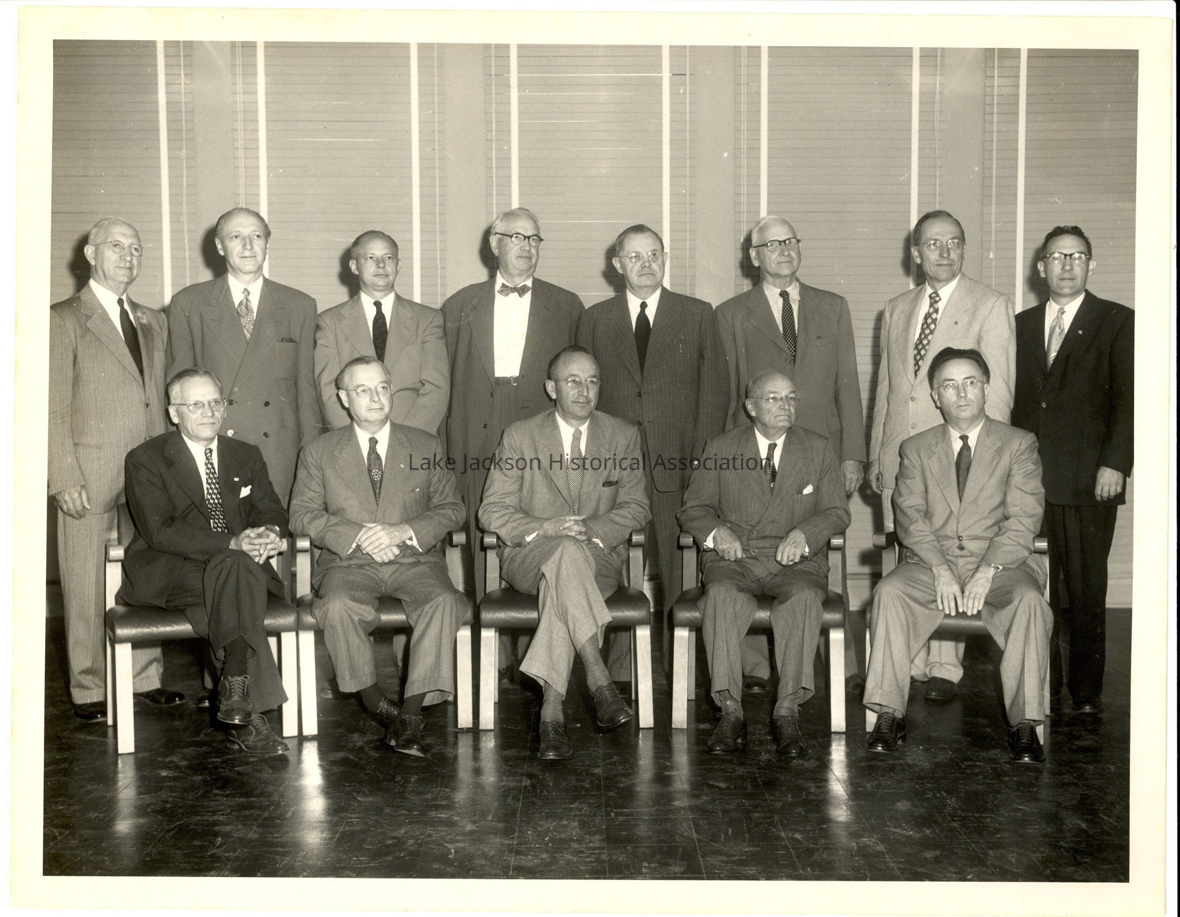 Black and white photo of Dow Chemical Company's Board of Directors. The photo includes A.P. Beutel and Alden Dow.Collection