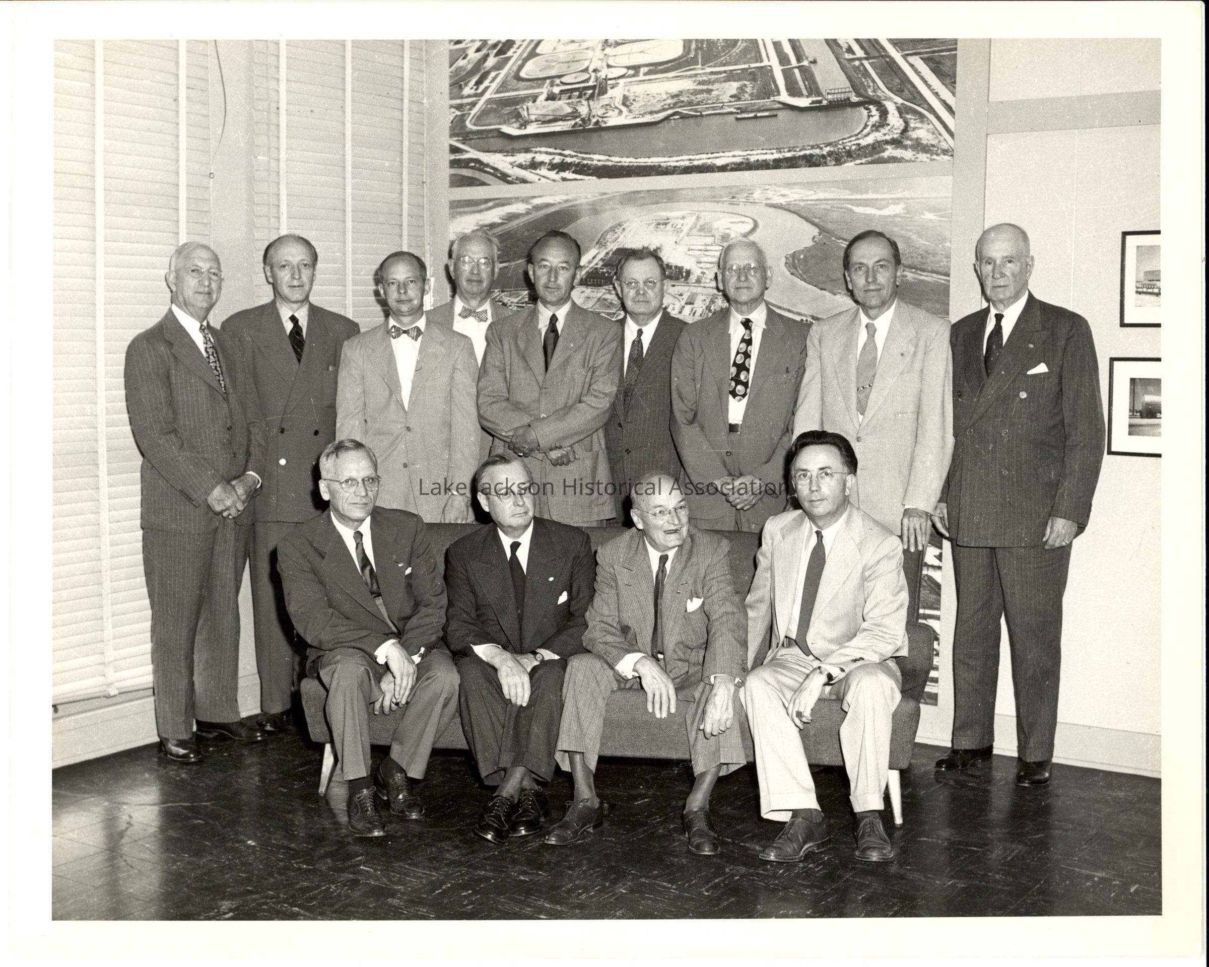 Black and white photo of Dow Chemical Company's Board of Directors in Dr. Beutel's office. Alden Dow is present.Collection