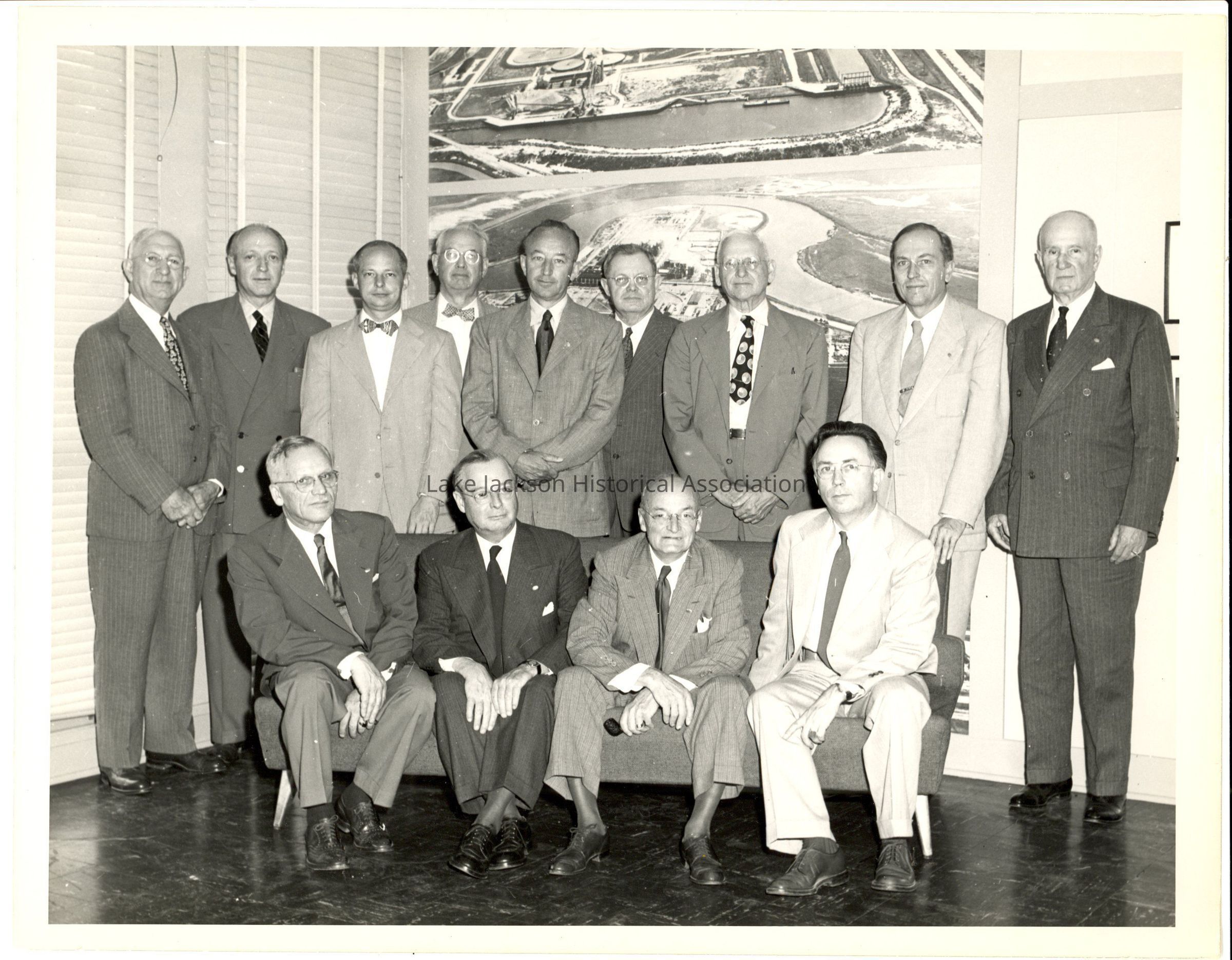 Black and white photo of Dow Chemical Company's Board of Directors in Dr. Beutel's office. Alden Dow is present.Collection