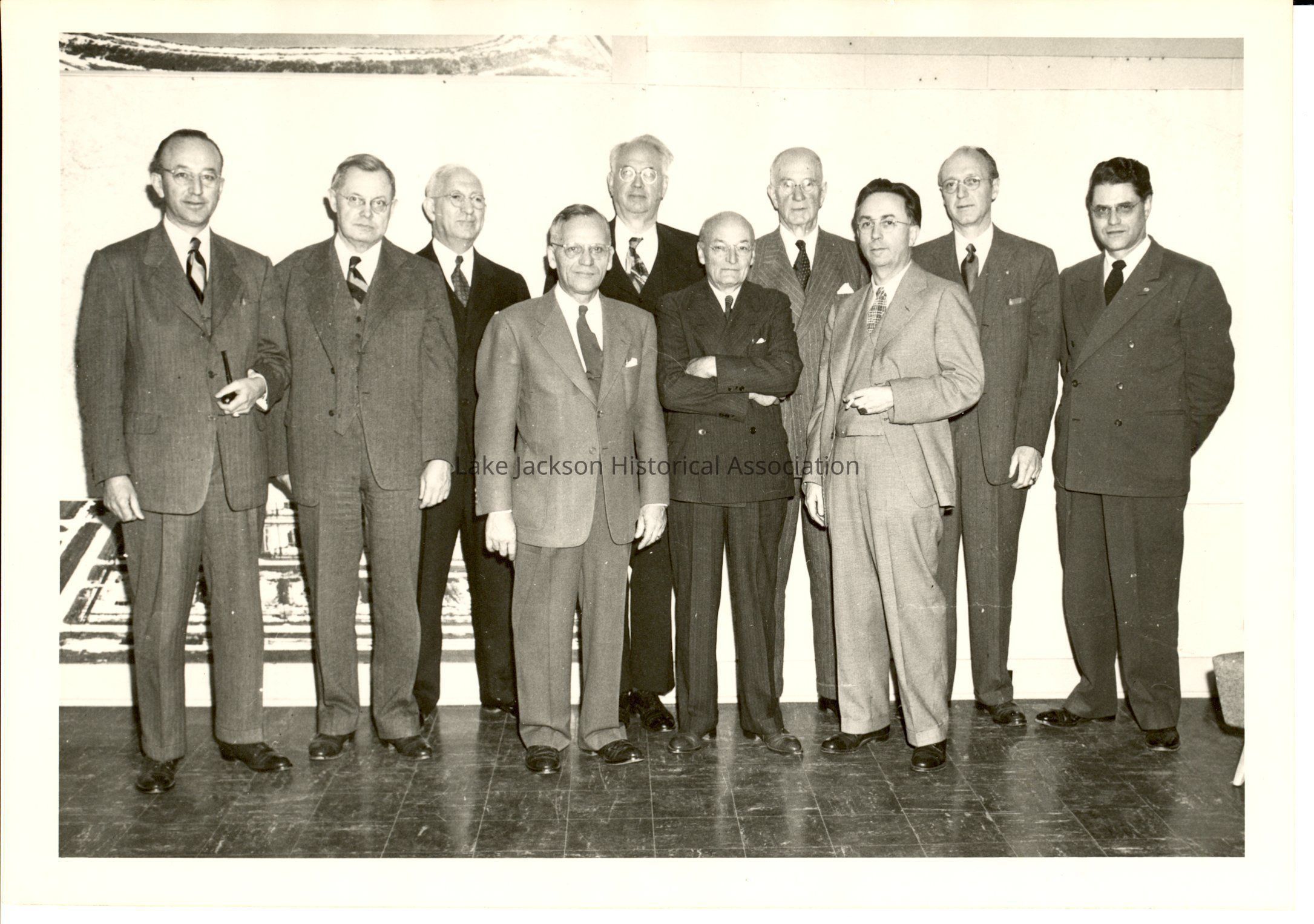 Black and white photo of Dr. Beutel and members of the Dow Chemical Company's Board of Directors. The photo includes Alden Dow.Collection