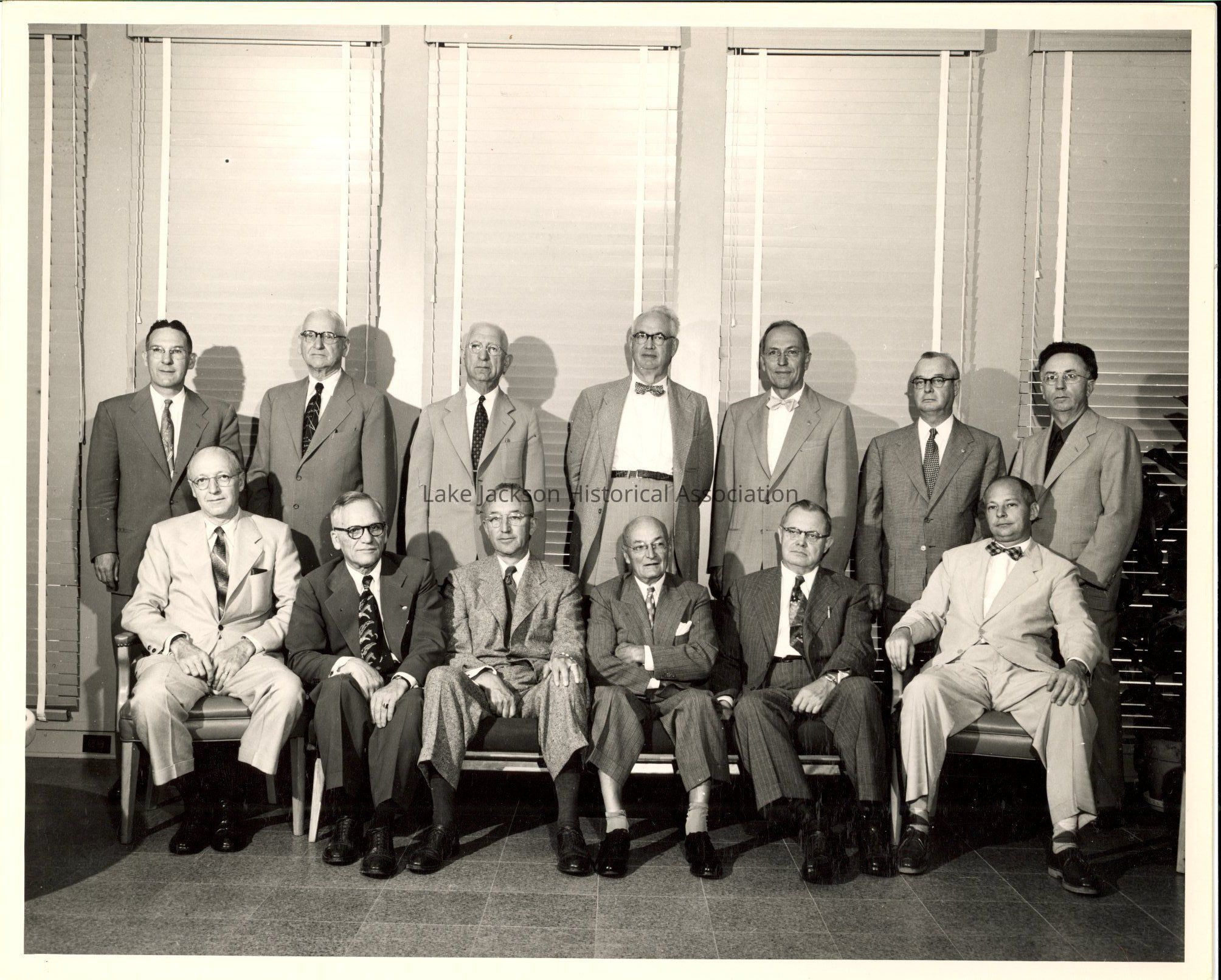 Black and white photo of Dow's Board of Directors. The photo includes Dr. Beutel and Alden Dow. The photo was taken in Beutel's office.Collection