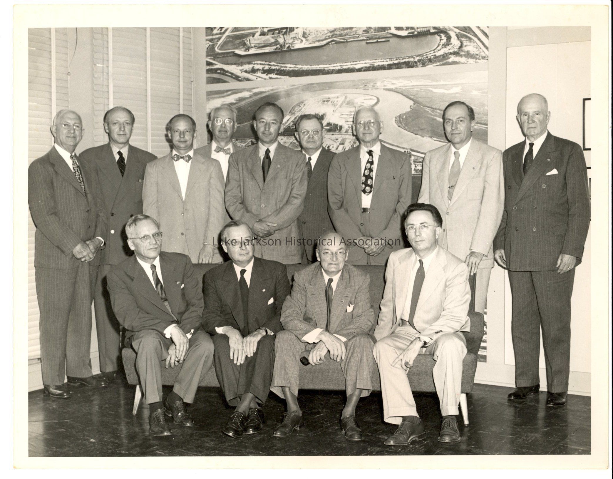Black and white photo of Dow's Board of Directors. The photo includes Dr. Beutel and Alden Dow. The photo was taken in Beutel's office.Collection