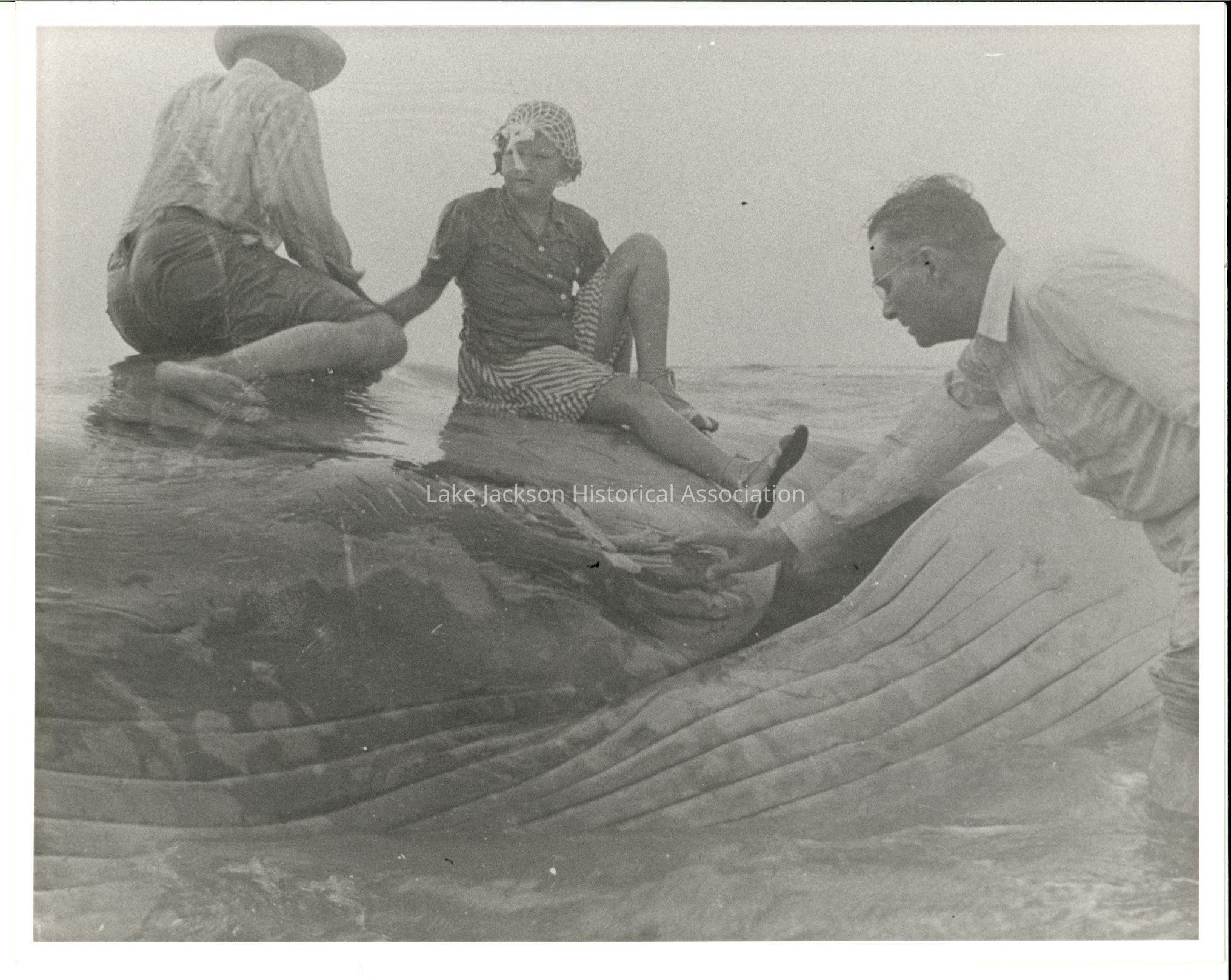 B & W Photo of a large whale that washed ashore at Surfside in 1941.Collection