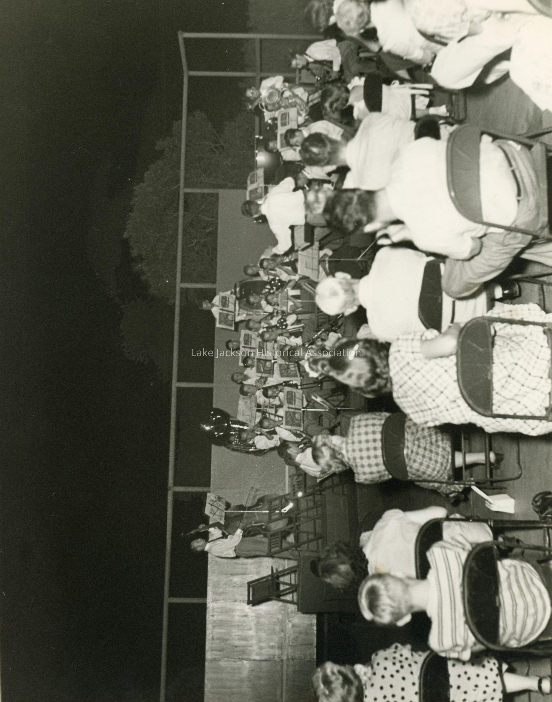 A black & white photo of the Dow Community Band in their concert.Collection