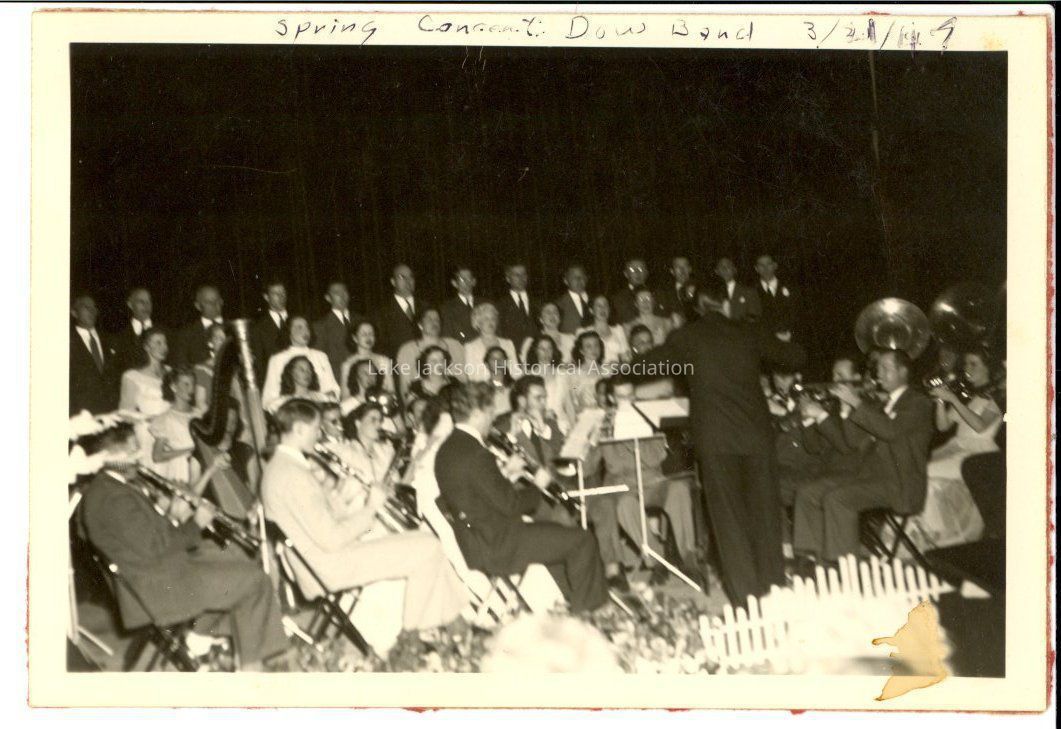 A black & white photo of the Dow band. The caption reads: "Spring Concert Dow Band".Collection