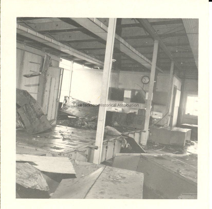 A small black and white picture of some destruction after Hurricane Carla.Collection