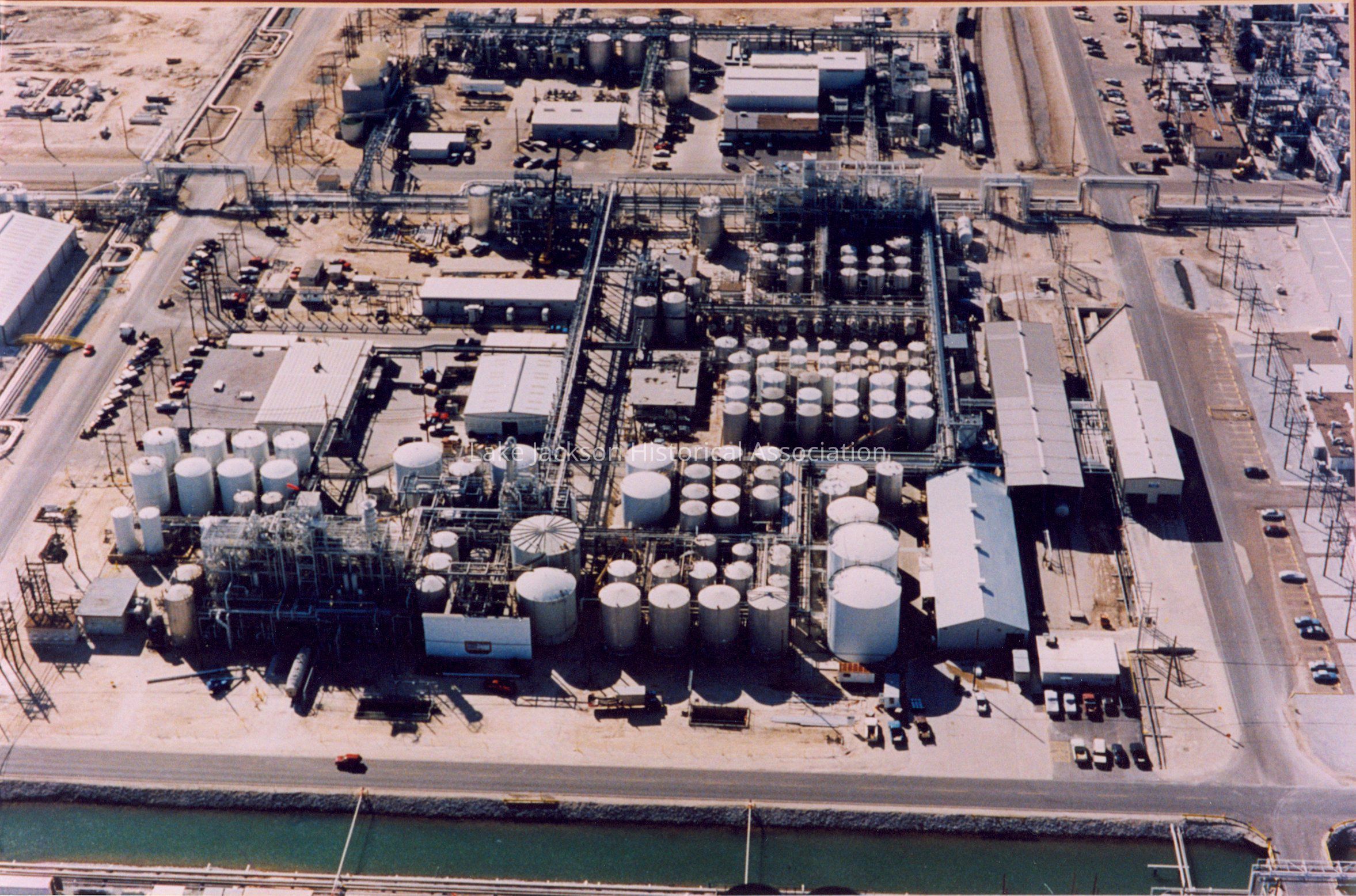 Color photo of B4400 Polyol Plant at Dow Chemical Company. The original date of the photo is unknown, but this reprint is dated April 16, 1998.Collection