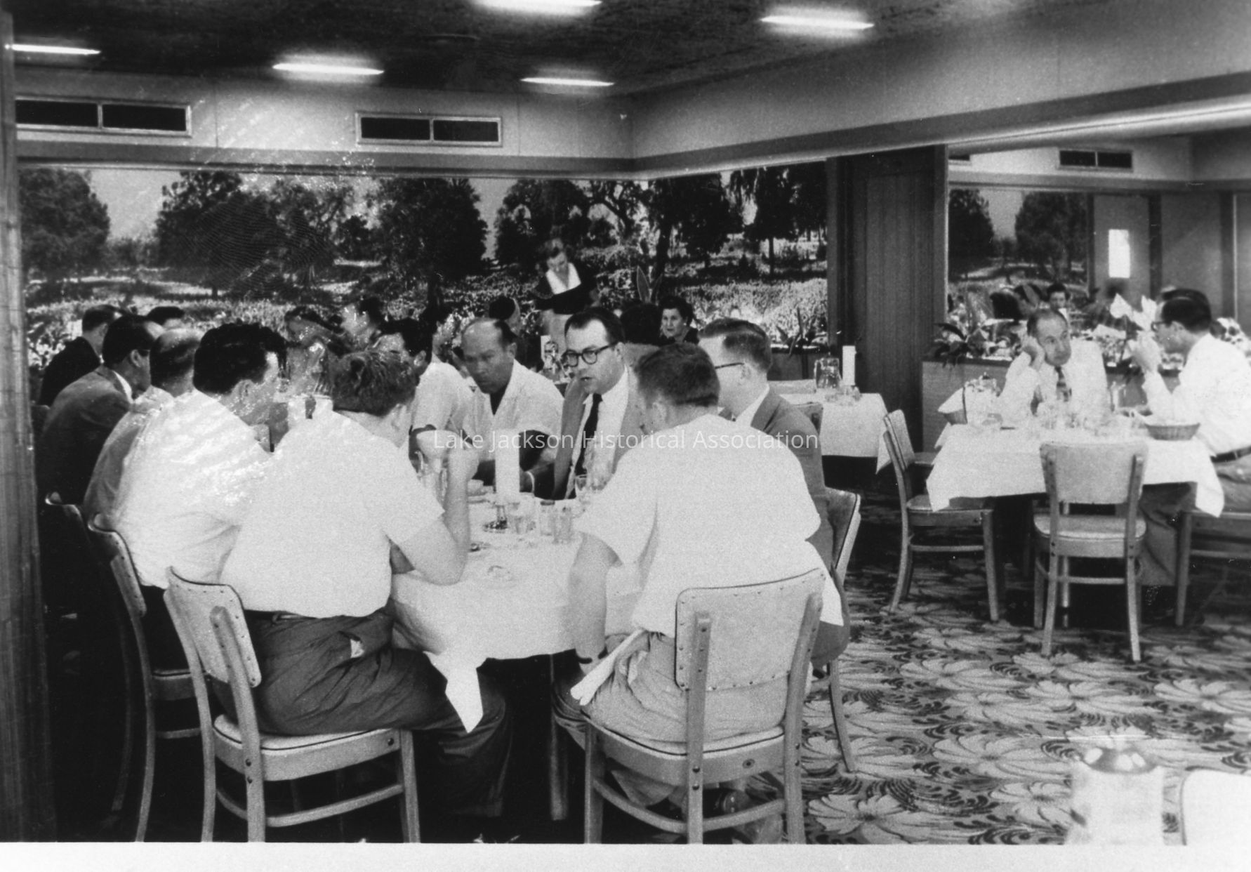 A black & white photo of men eating at the Dow Hotel in the 1950s.Collection
