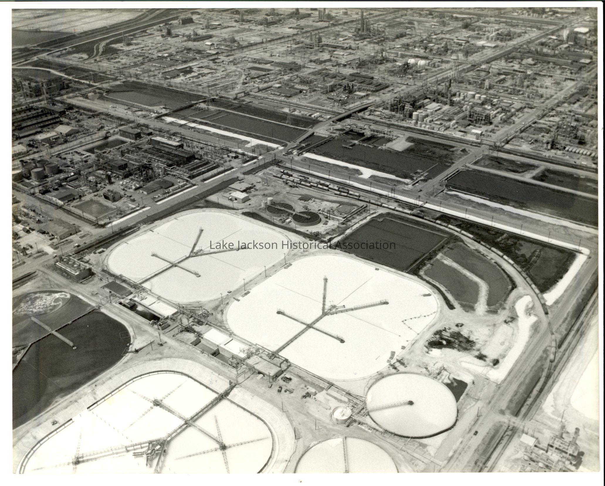 A black & white aerial photo of Plant B overlooking Dorr ponds.Collection