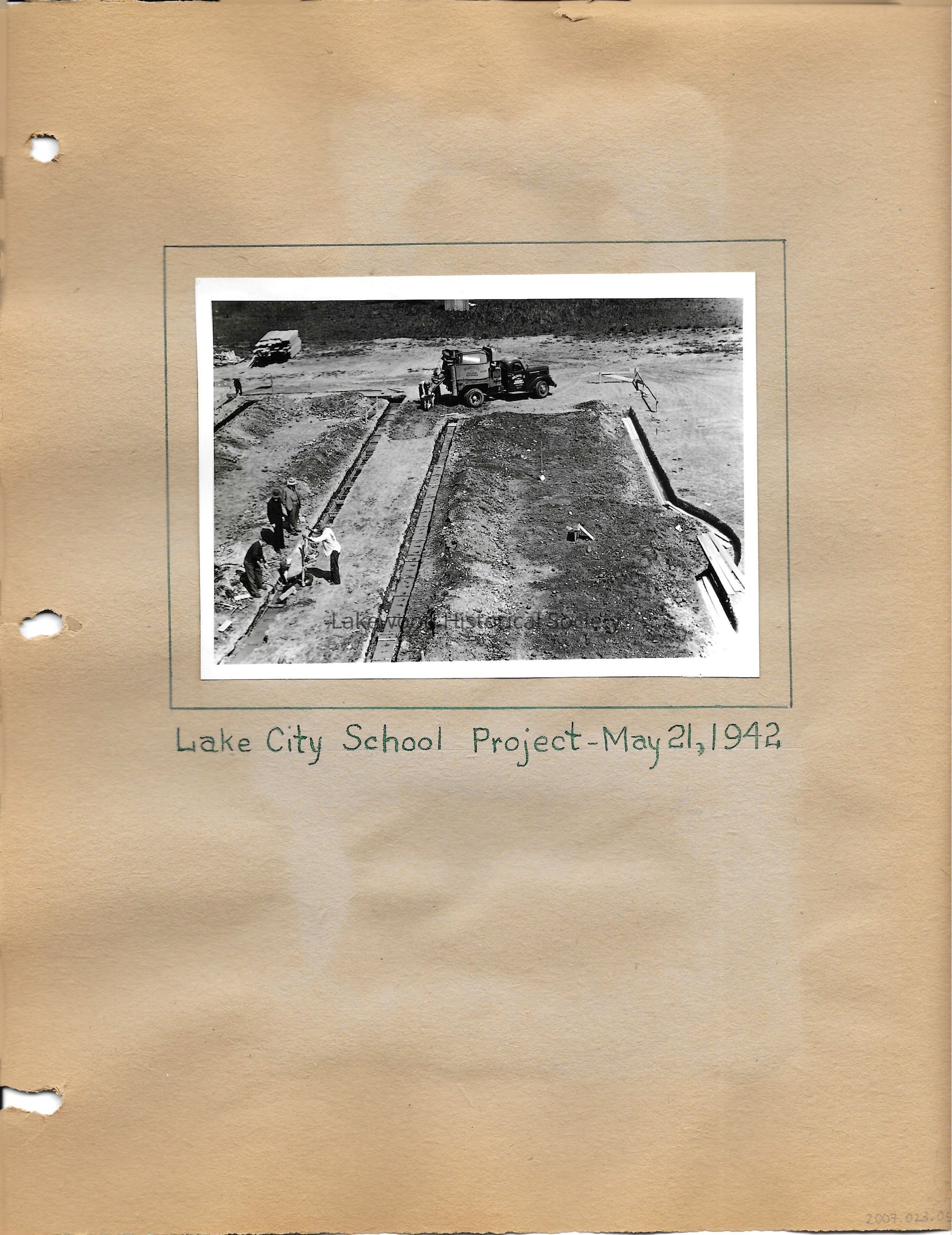Foundations of Lake City School being worked on 1942Description