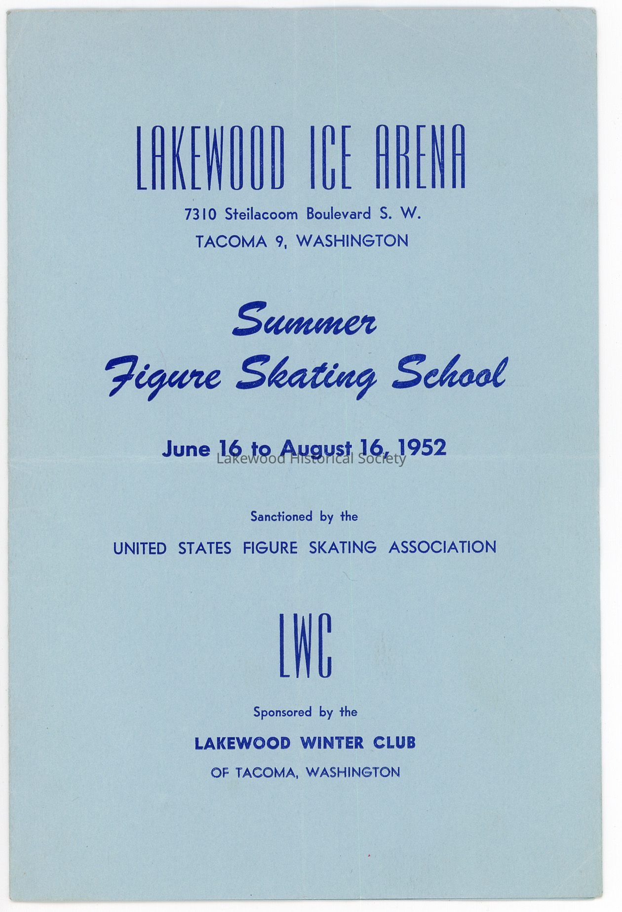 Lakewood Ice Arena Summer Figure Skating School June 16 to August 16, 1952