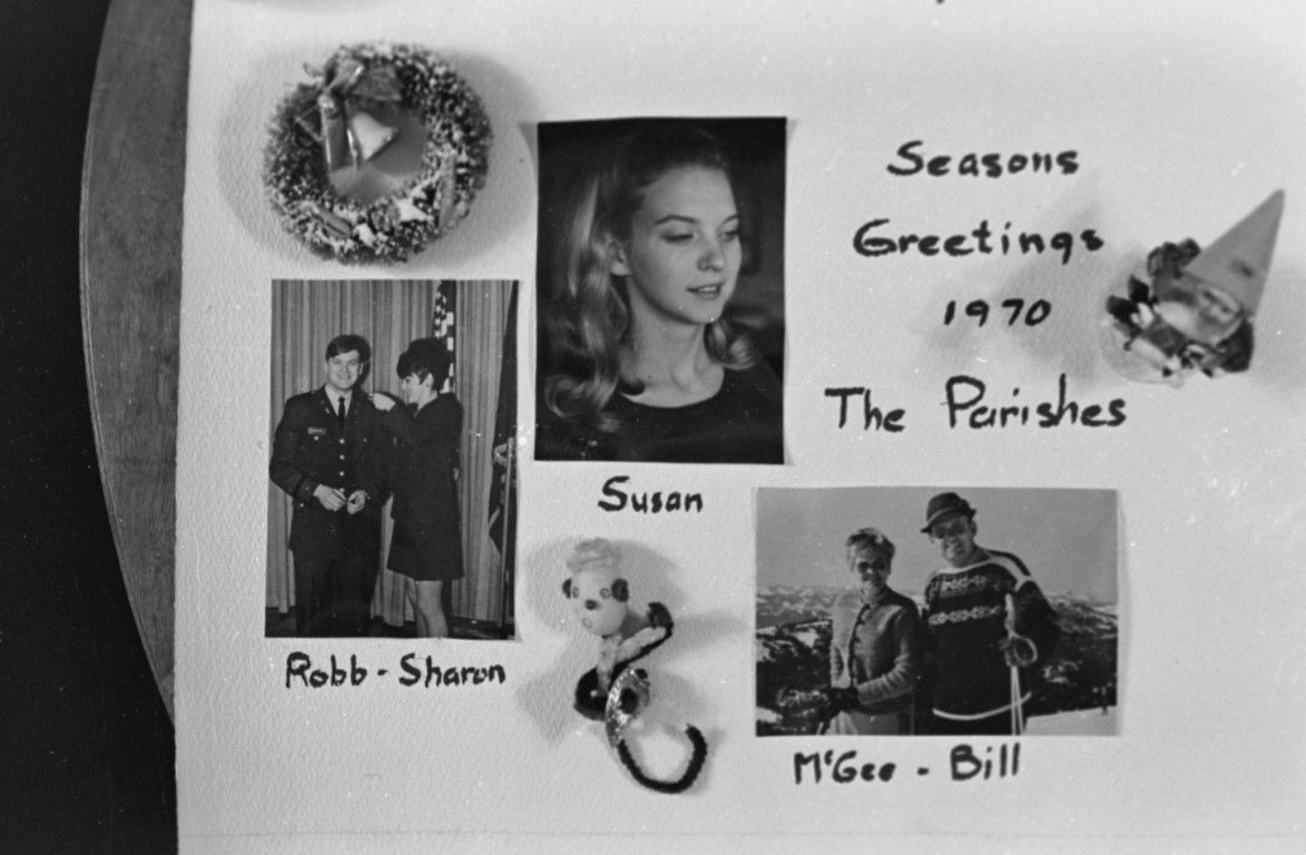 A homemade Christmas card from 1970 with photos of the members of the Parish family.