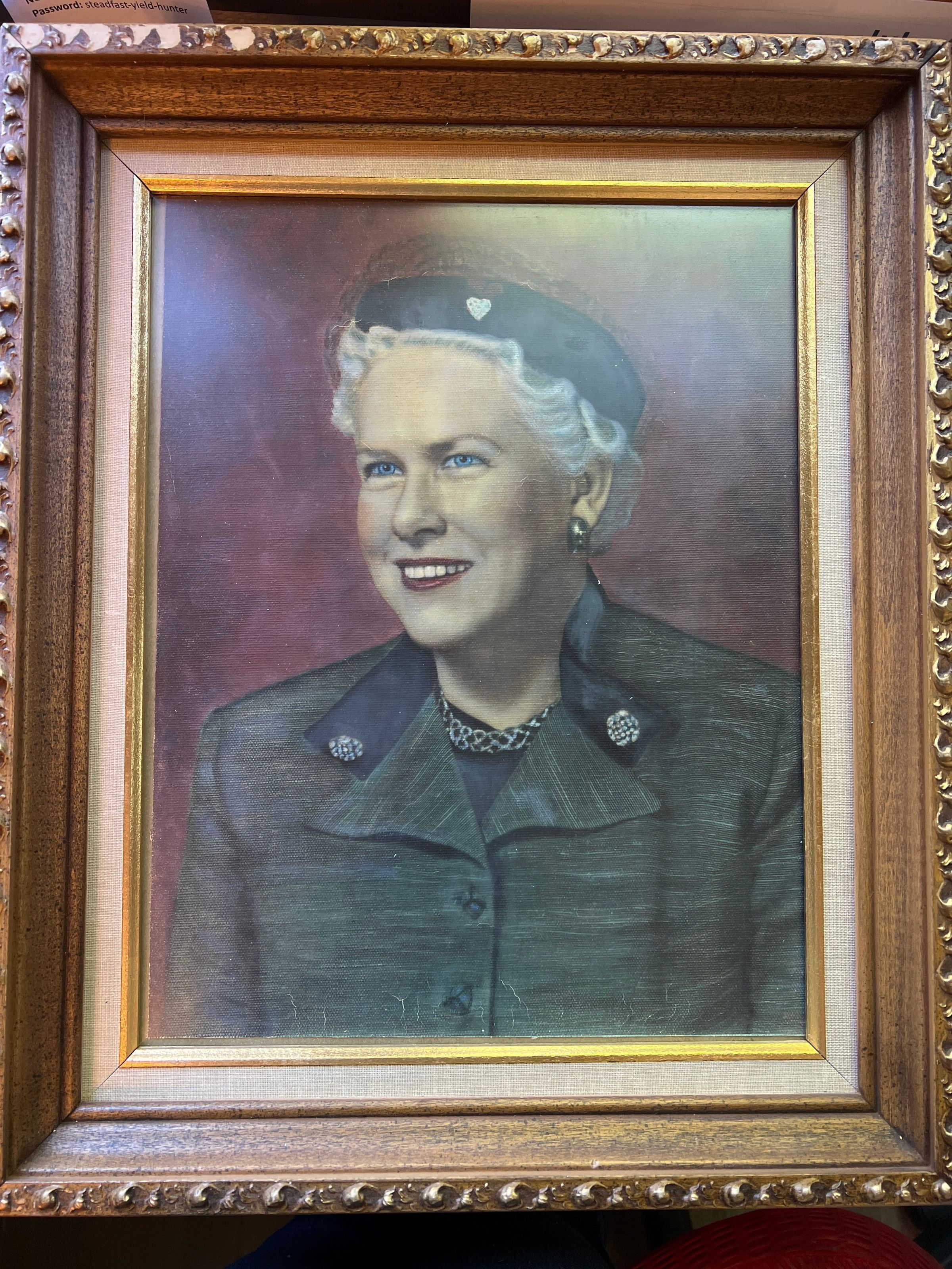 Portrait of Pearl Robinson waring a green suit with silver embellishments.