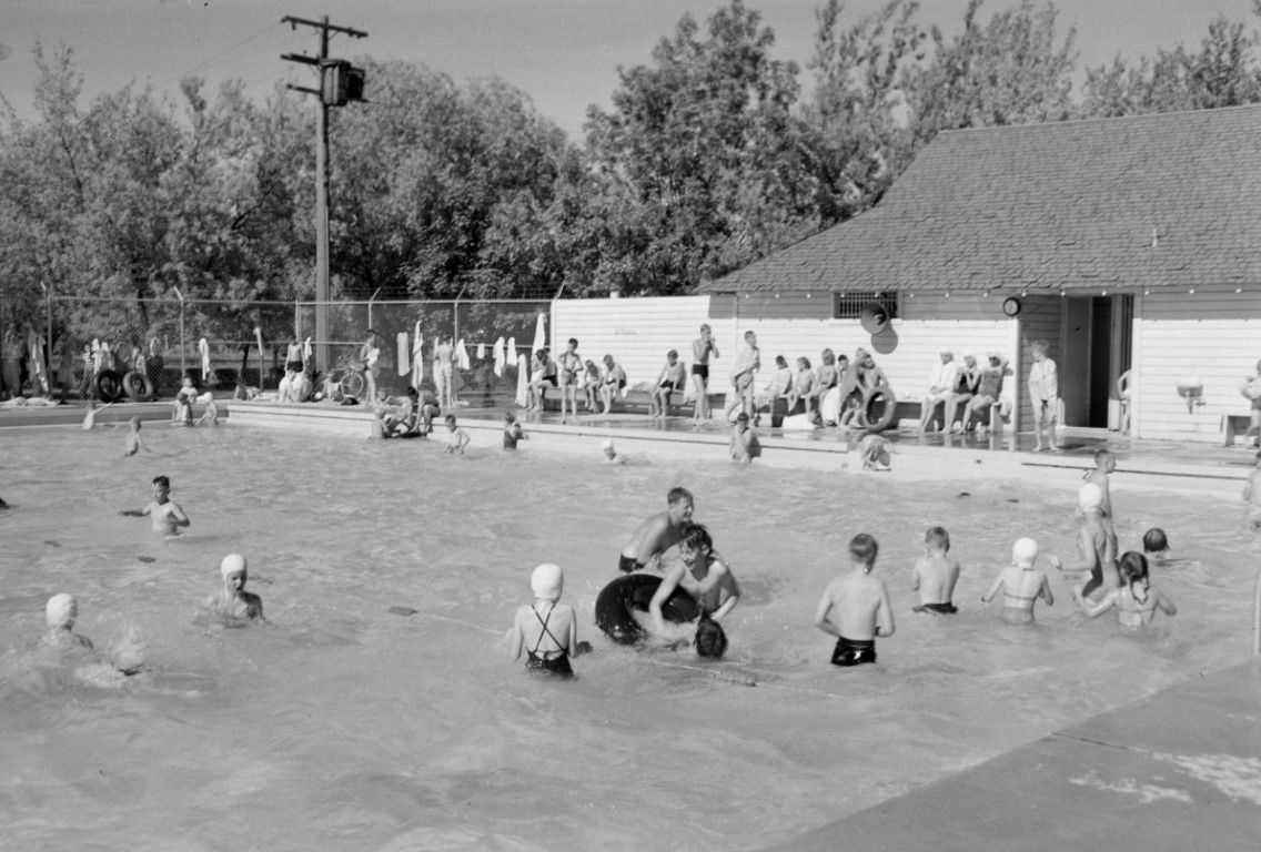 Children playing in and around the Ghormley Park swimming pool.
