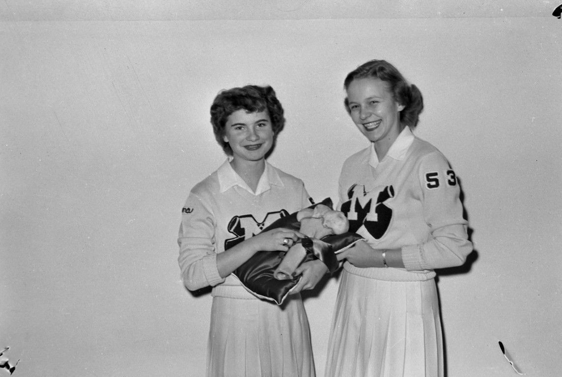 Two smiling Moscow High School cheerleaders.