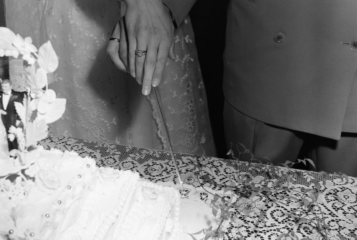 Cutting the wedding cake (close up)