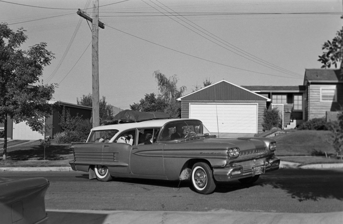People in the family car pulling into the driveway.
