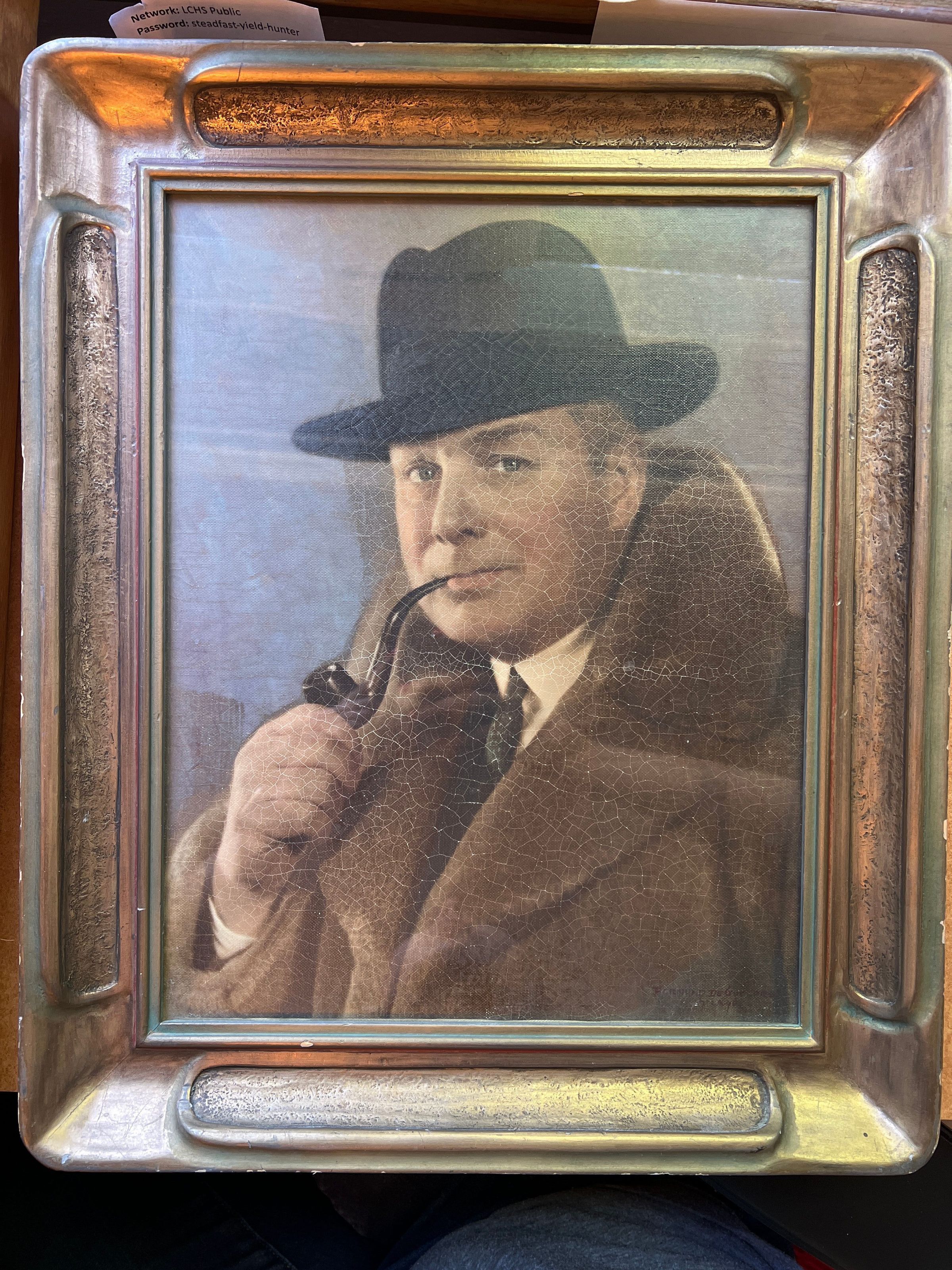 Portrait of Frank B. Robinson wearing a fur coat and black hat while smoking a pipe.