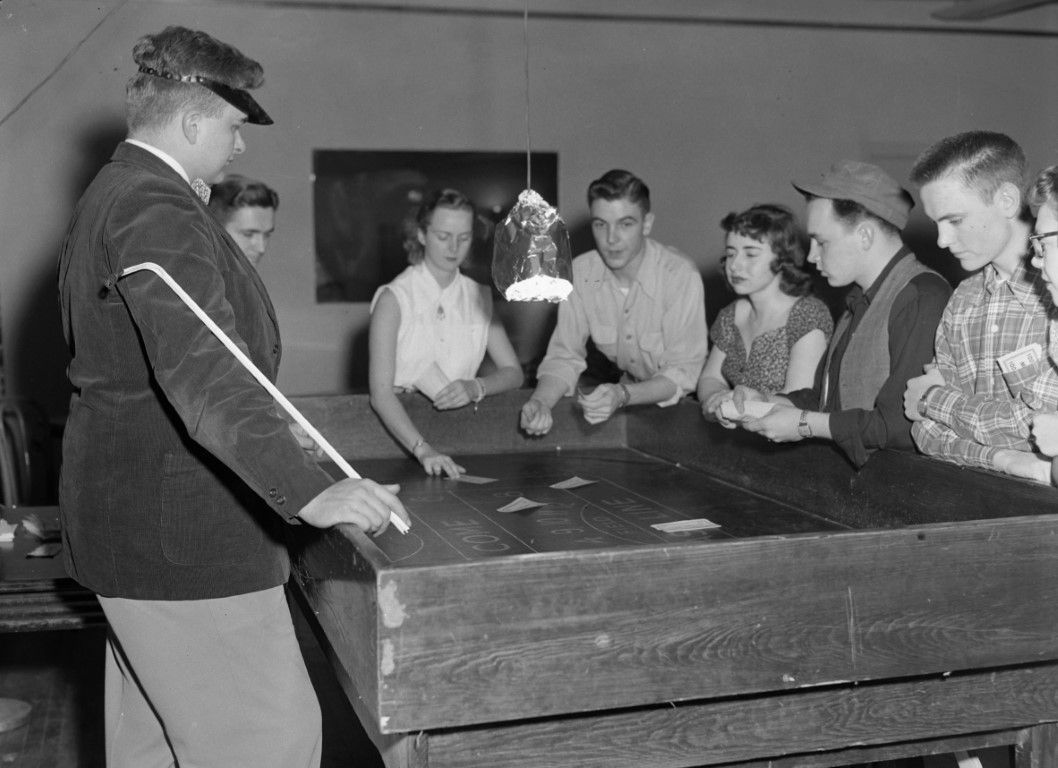 A group of young adults playing craps.