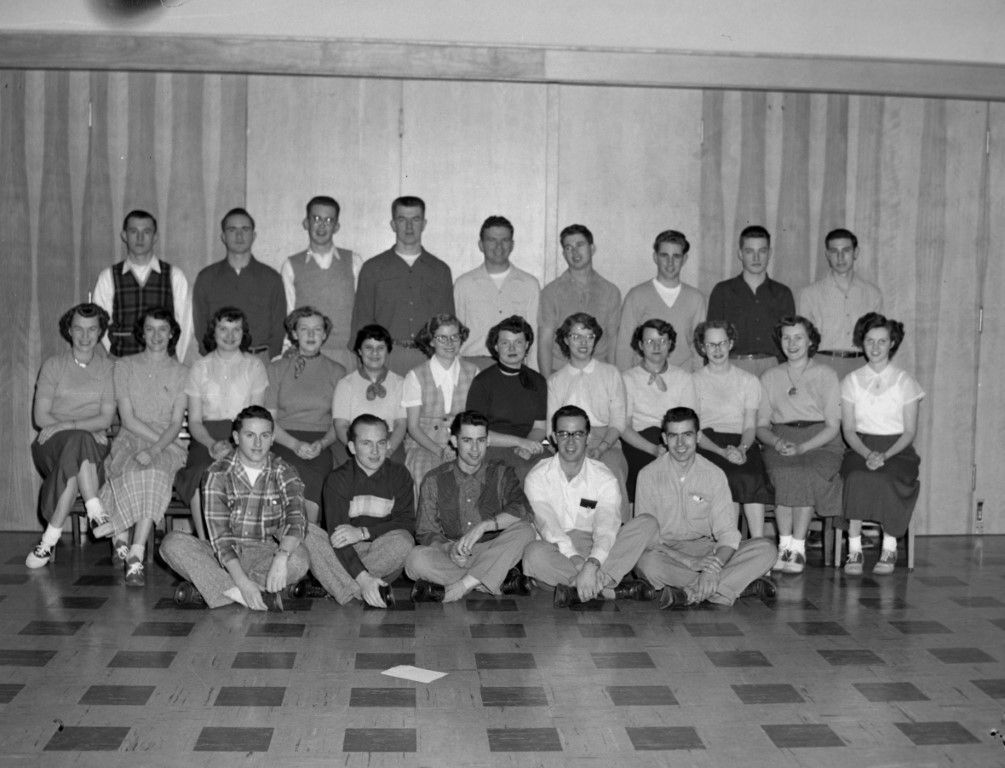 A large group of young women and men posing for a photo.