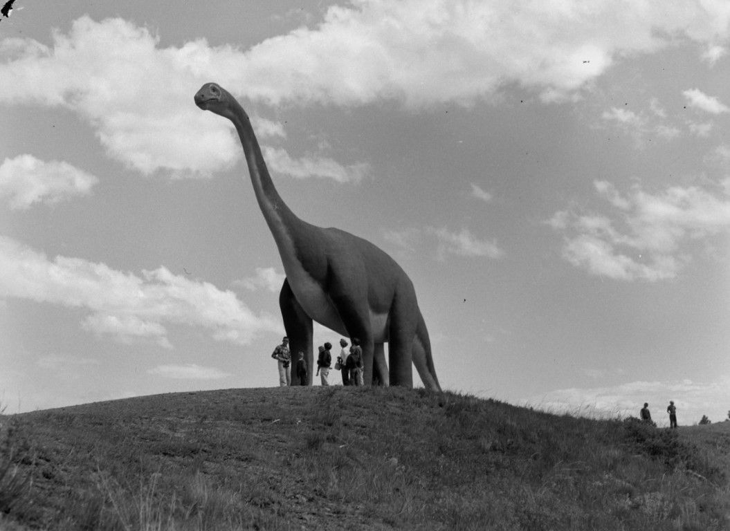 People under a dinosaur [SIMILAR #369]