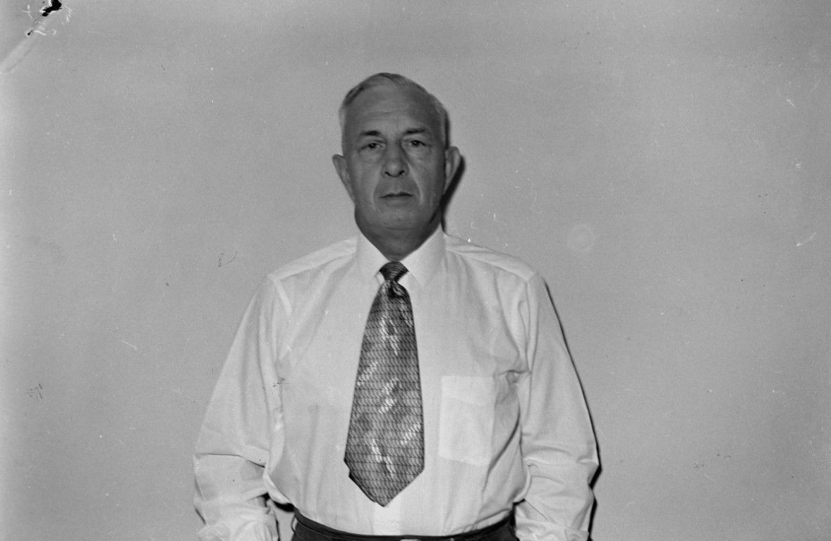 A man wearing a shirt and tie is being photographed from the chest up as he stands in front of an empty wall.