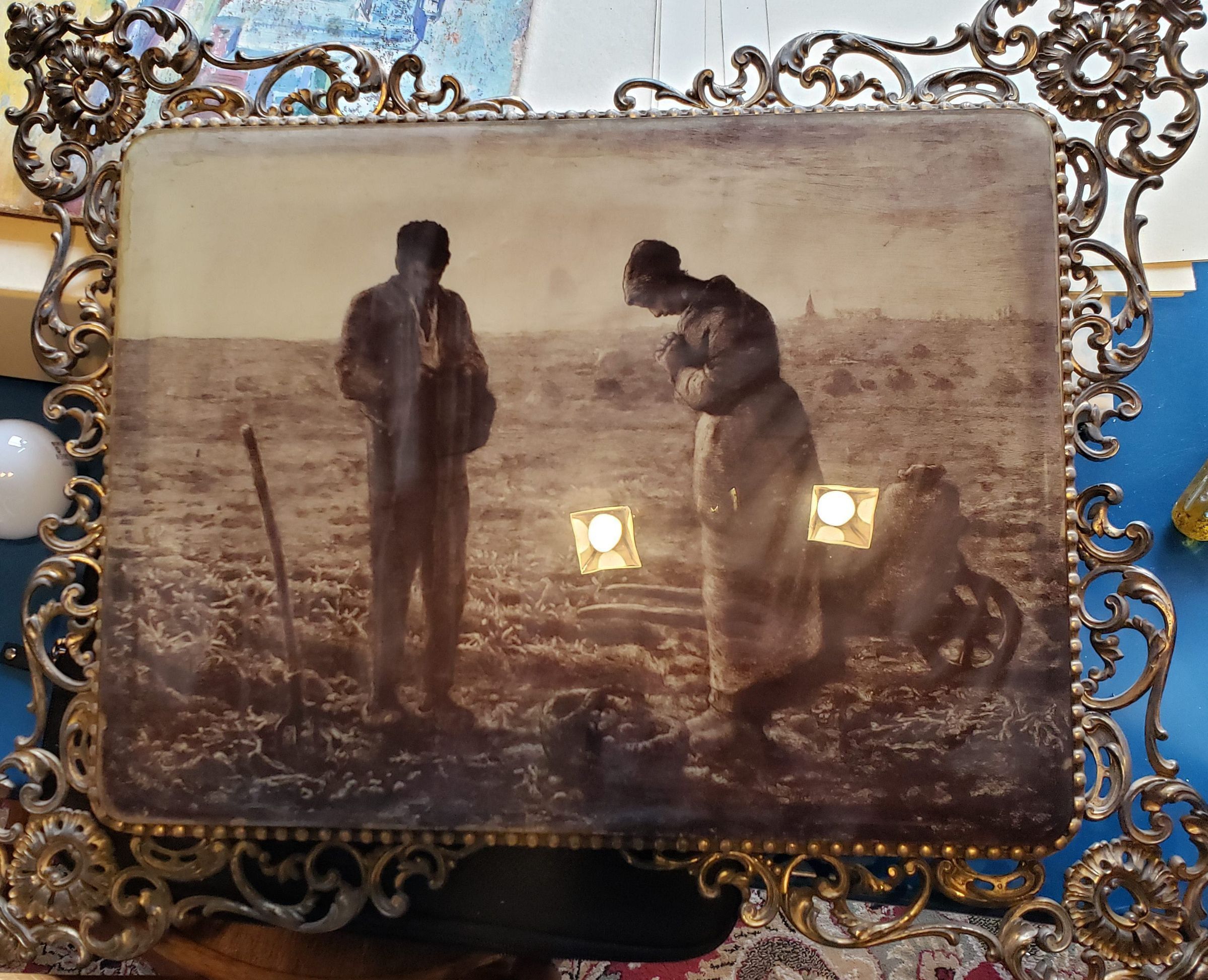 framed picture; metal frame; "The Angelus"