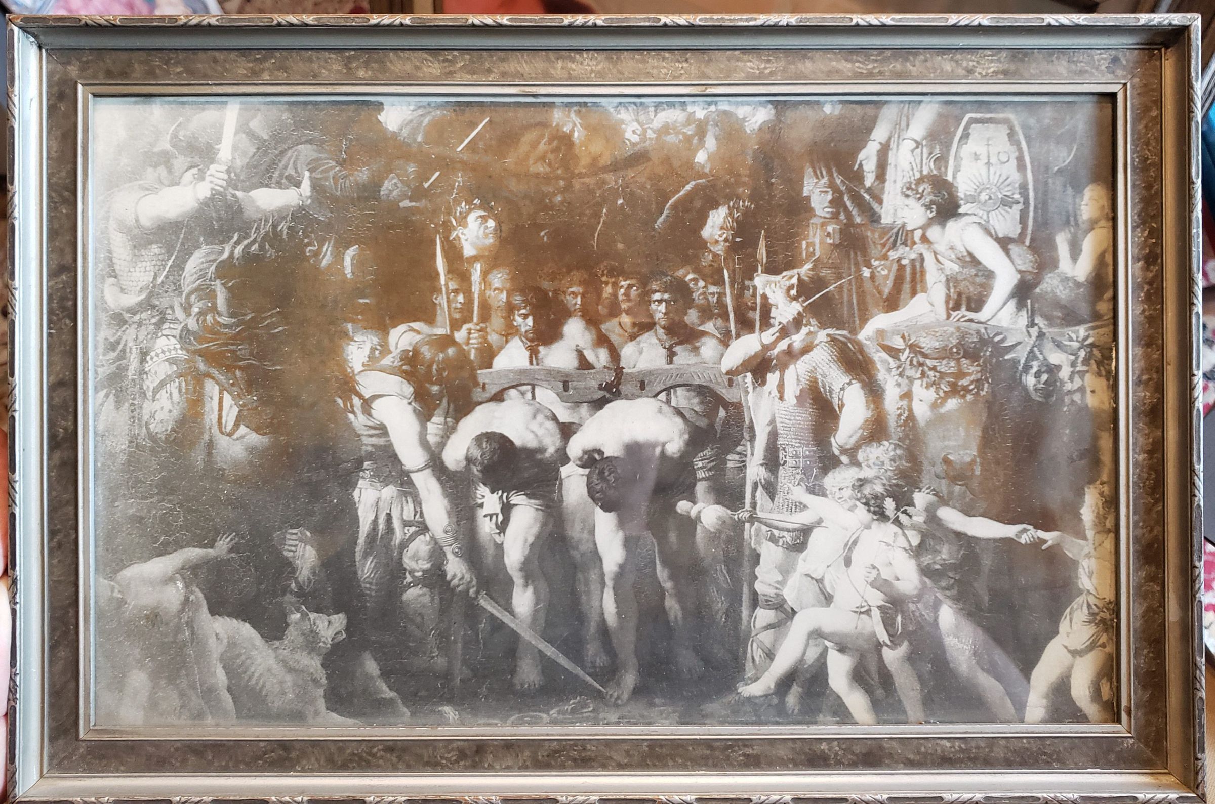 picture of parading of prisoners through a city street; frame 15 1/2 x 10 1/4; picture 13 3/4 x 8 3/8