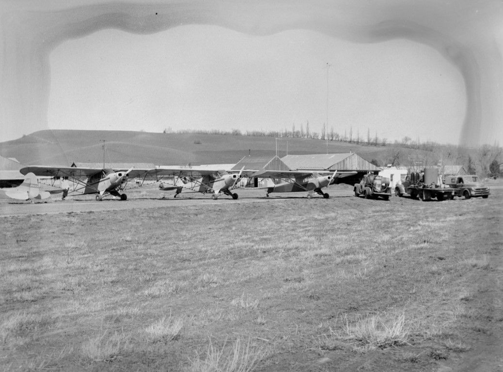 A line of crop dusters and another Piper at Fountains airstrip south of Moscow.