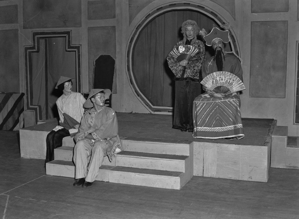 Players portraying characters from 'far eastern' cultures on stage in Moscow, Idaho.