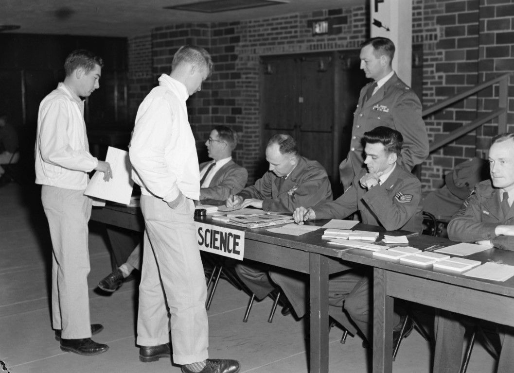 Two students at a registration table at the University of Idaho.
