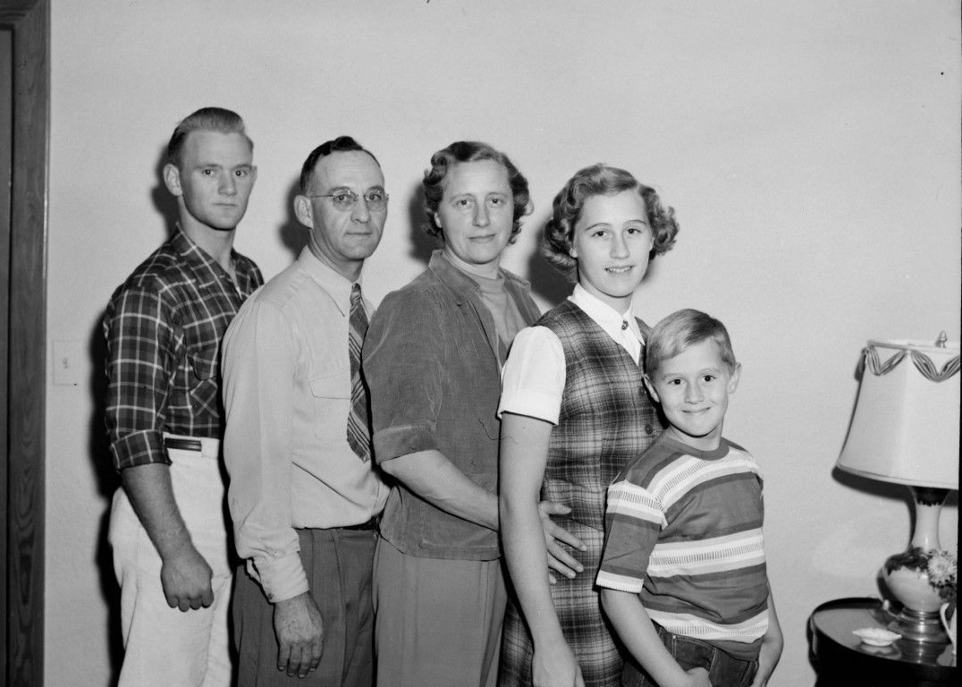 A family of five posing for a photo