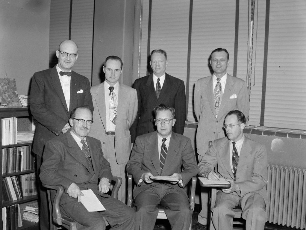 Seven men in a room