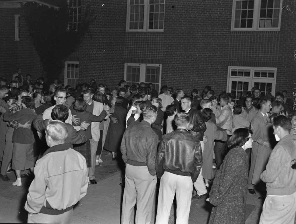 A large group of young people at a street dance.