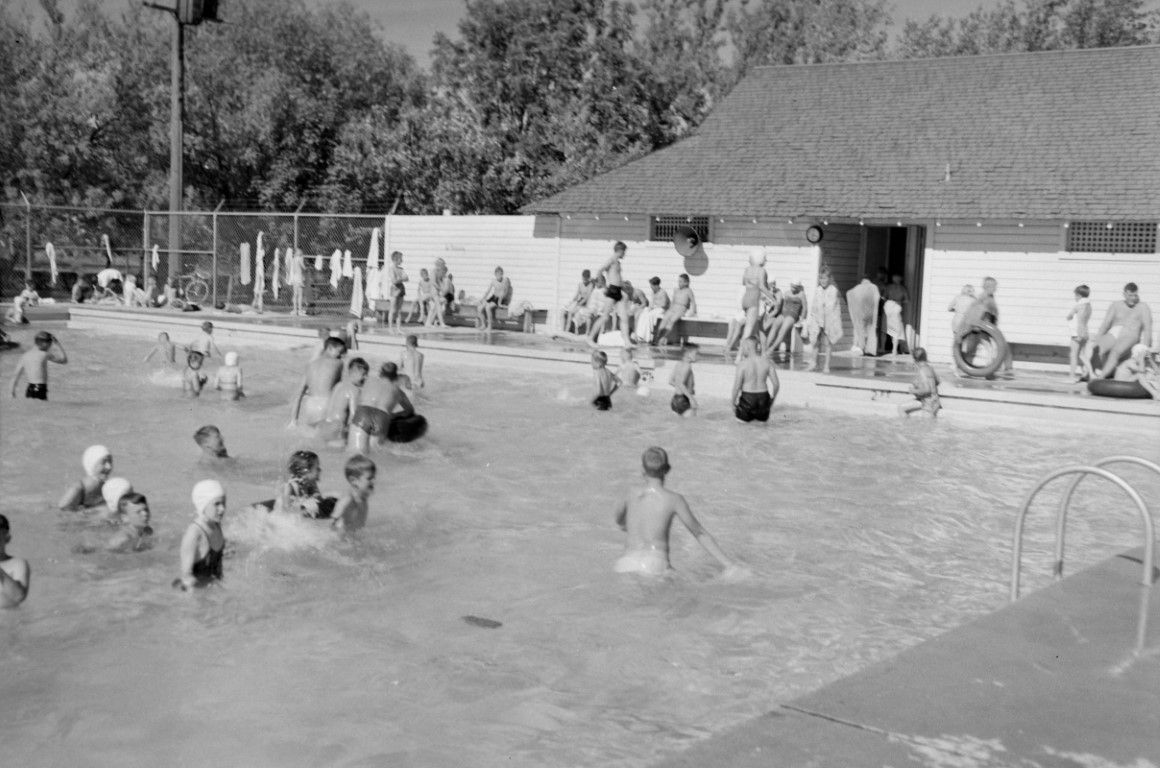 Children playing in and around the Ghormley Park swimming pool.