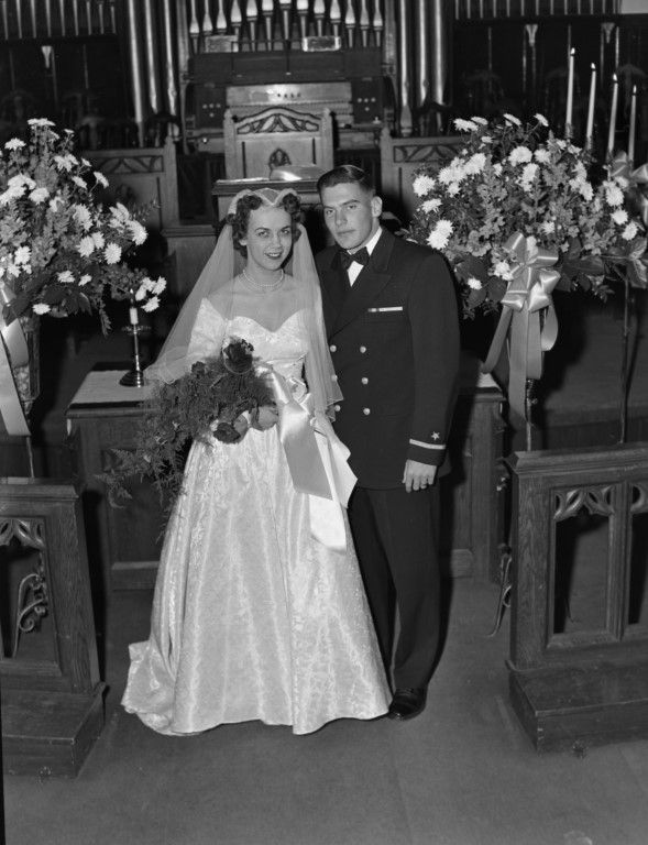 A newly married couple standing in the Moscow First United Methodist Church.