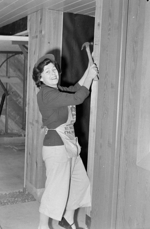 Woman hammering a nail