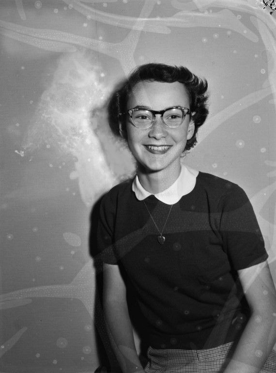 Photograph of a smiling young woman in glasses.
