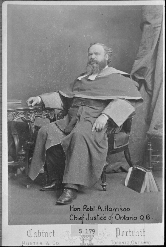 Minutes of Convocation - vol. 5, p. 578 (Tuesday, November 16, 1875): Resolved that Mr. Berthon be employed to paint the portrait of Chief Justice Harrison in the usual form, and also a half-length picture of Mr. Treasurer [John Hillyard Cameron]. Minutes of Convocation - vol. 6, p. 51 (Tuesday, December 26, 1876): Ordered that Mr. Berthon's account for Chief Justice Harrison's and the Honorable J. Hillyard Cameron pictures be paid. Carr (M. Phil., p. 92) suggests that this painting was done based on a photo by Hunter & Co. dating from 1875 to 1878 (Archives of Ontario).Notes
