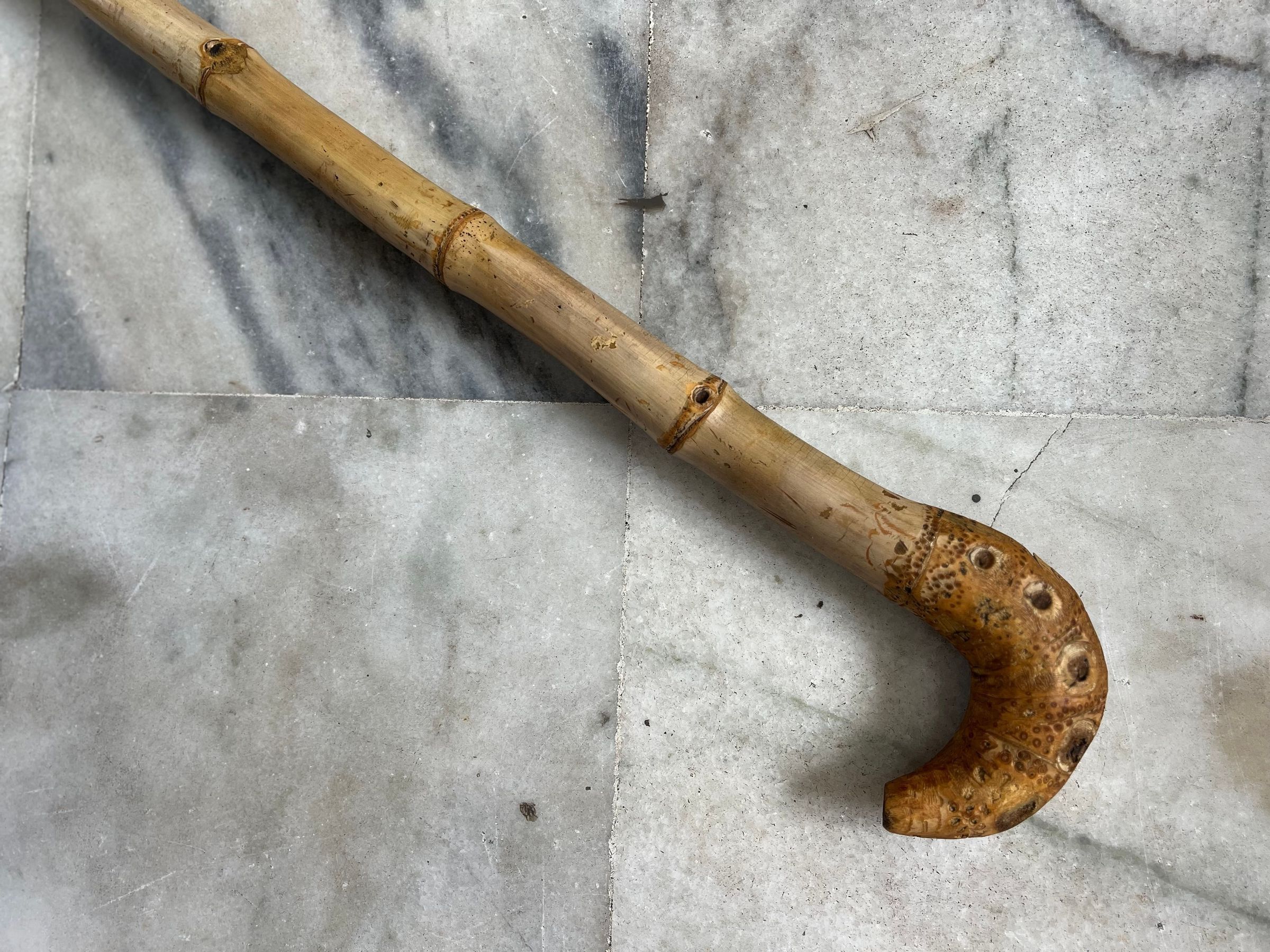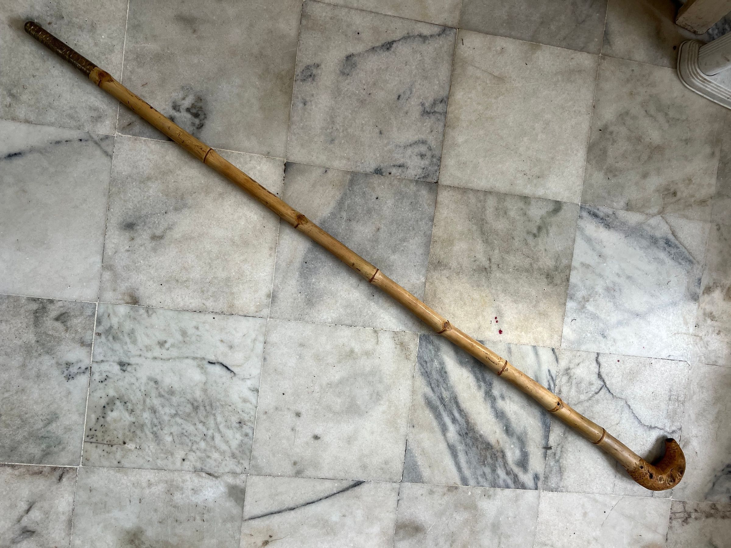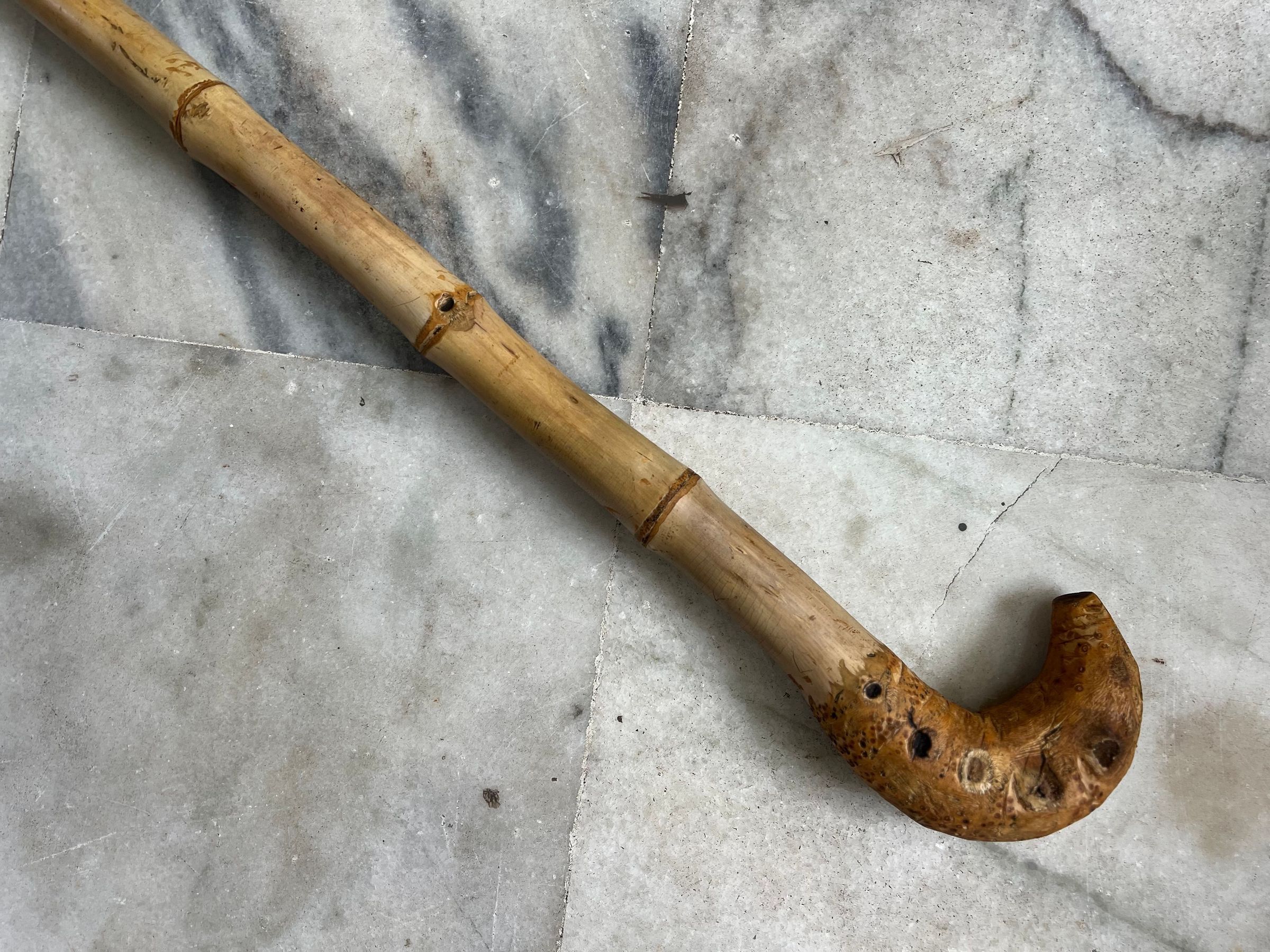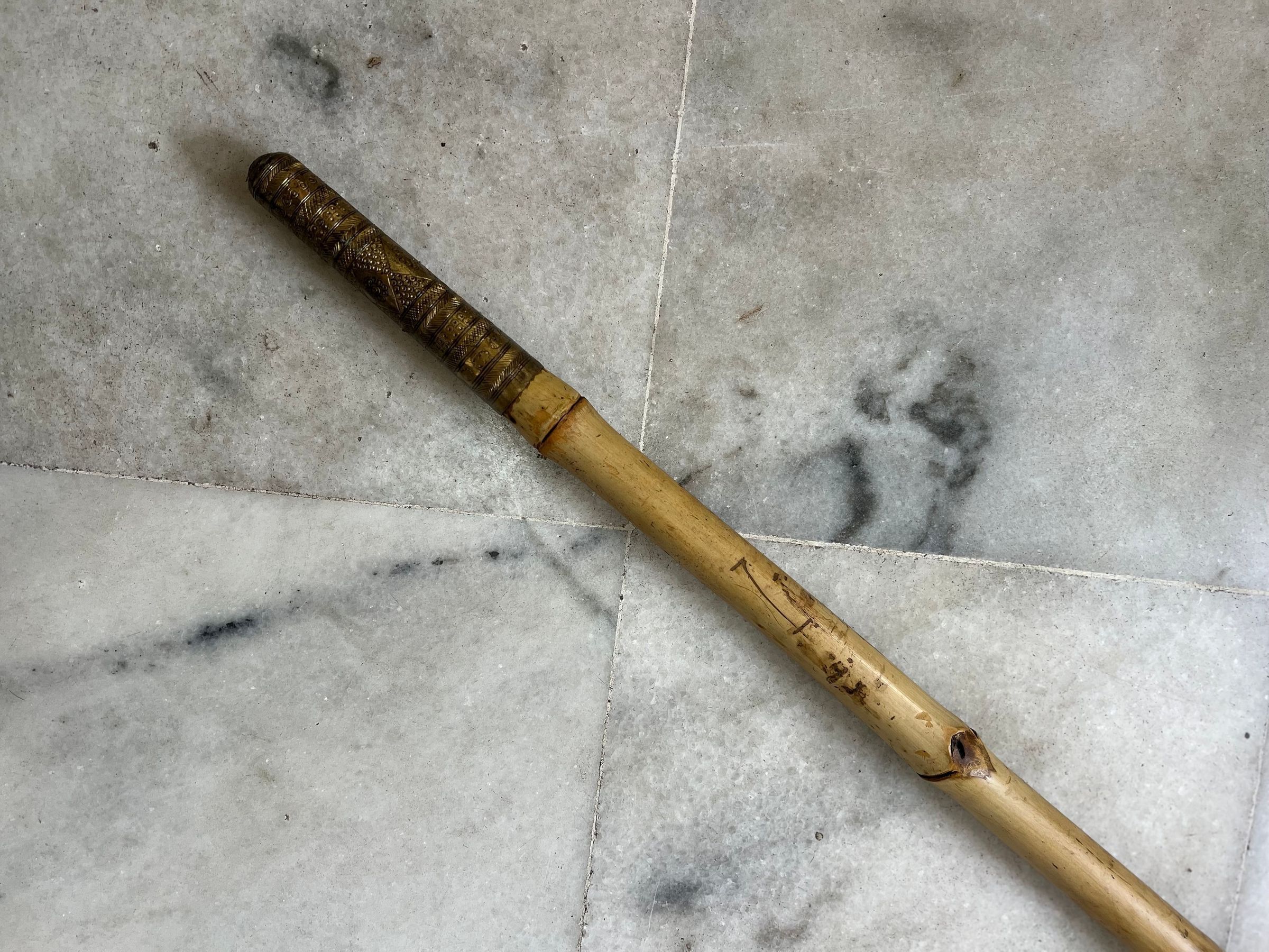 Special and Highly sought after item, due to the complete bamboo unto root level. The off shoot points "Eyes" are the important feature to determine the value. This one has 5 on each side. Brass end ferule, is fitted for preservation, and is oiled by the collector with olive oil to increase longitivity of the bamboo.Made/Created