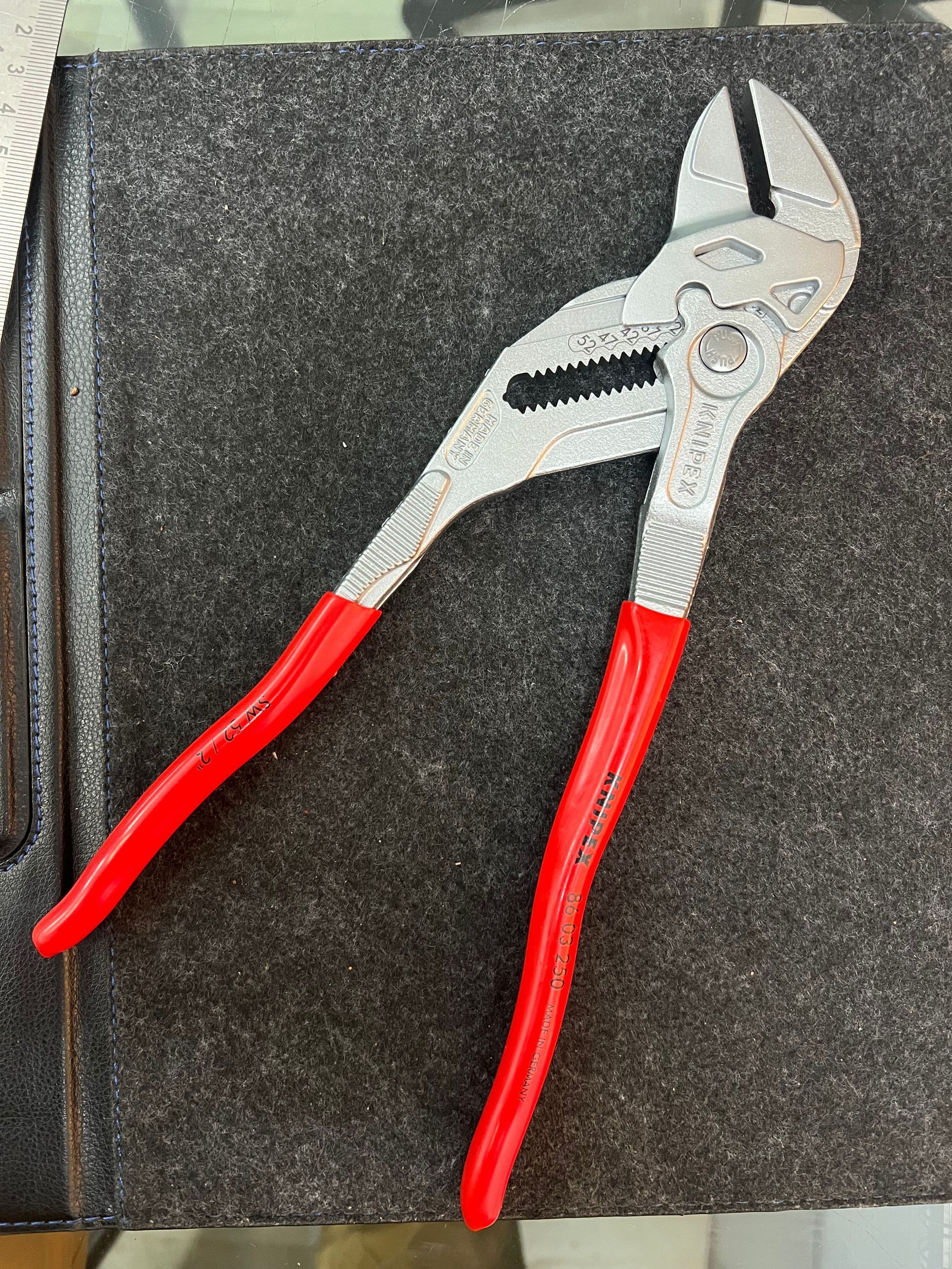 The Knipex 86 03 250 is a 250mm long, chrome-plated pliers wrench designed to replace a full set of metric and imperial spannersMade/Created
