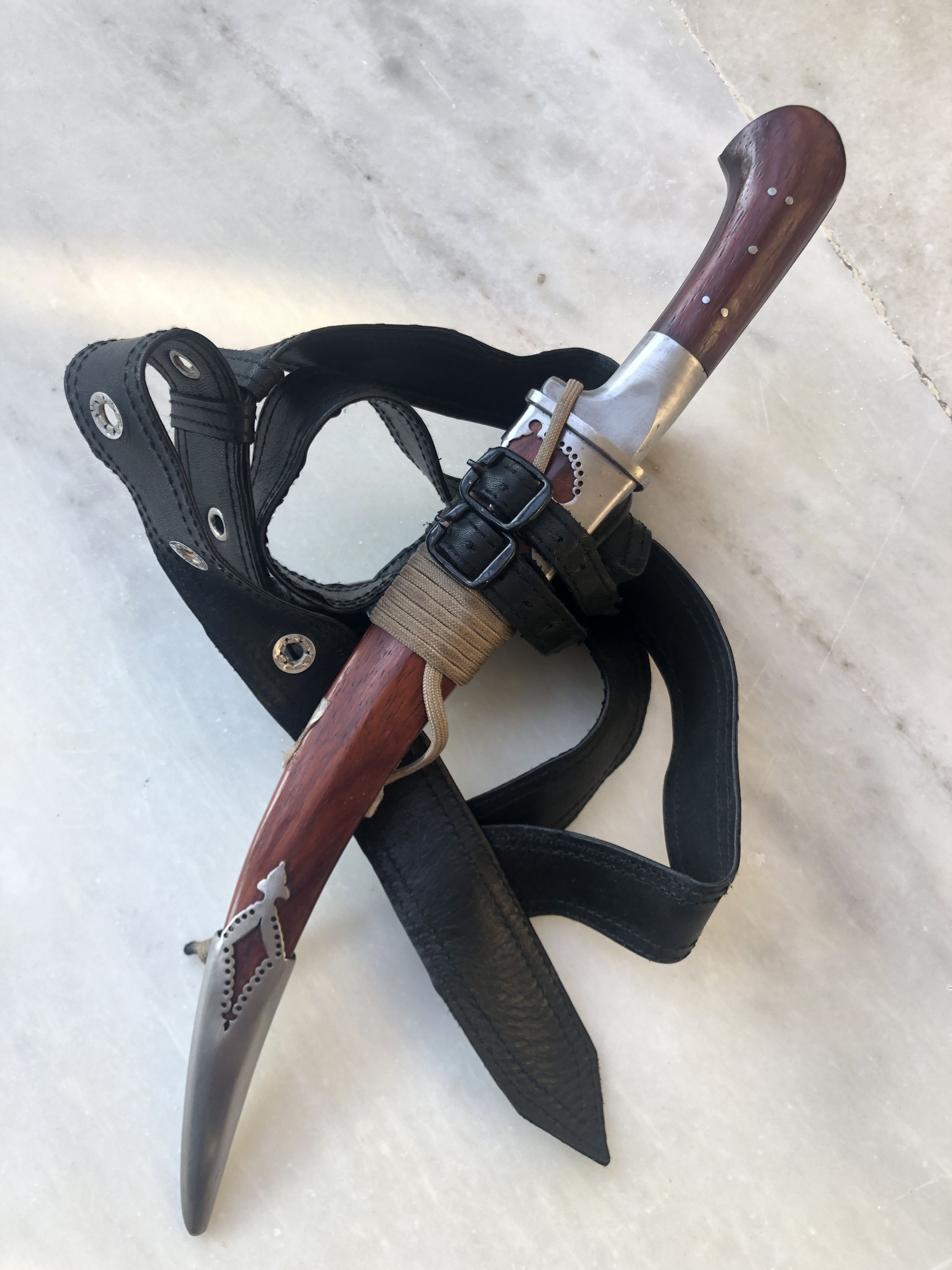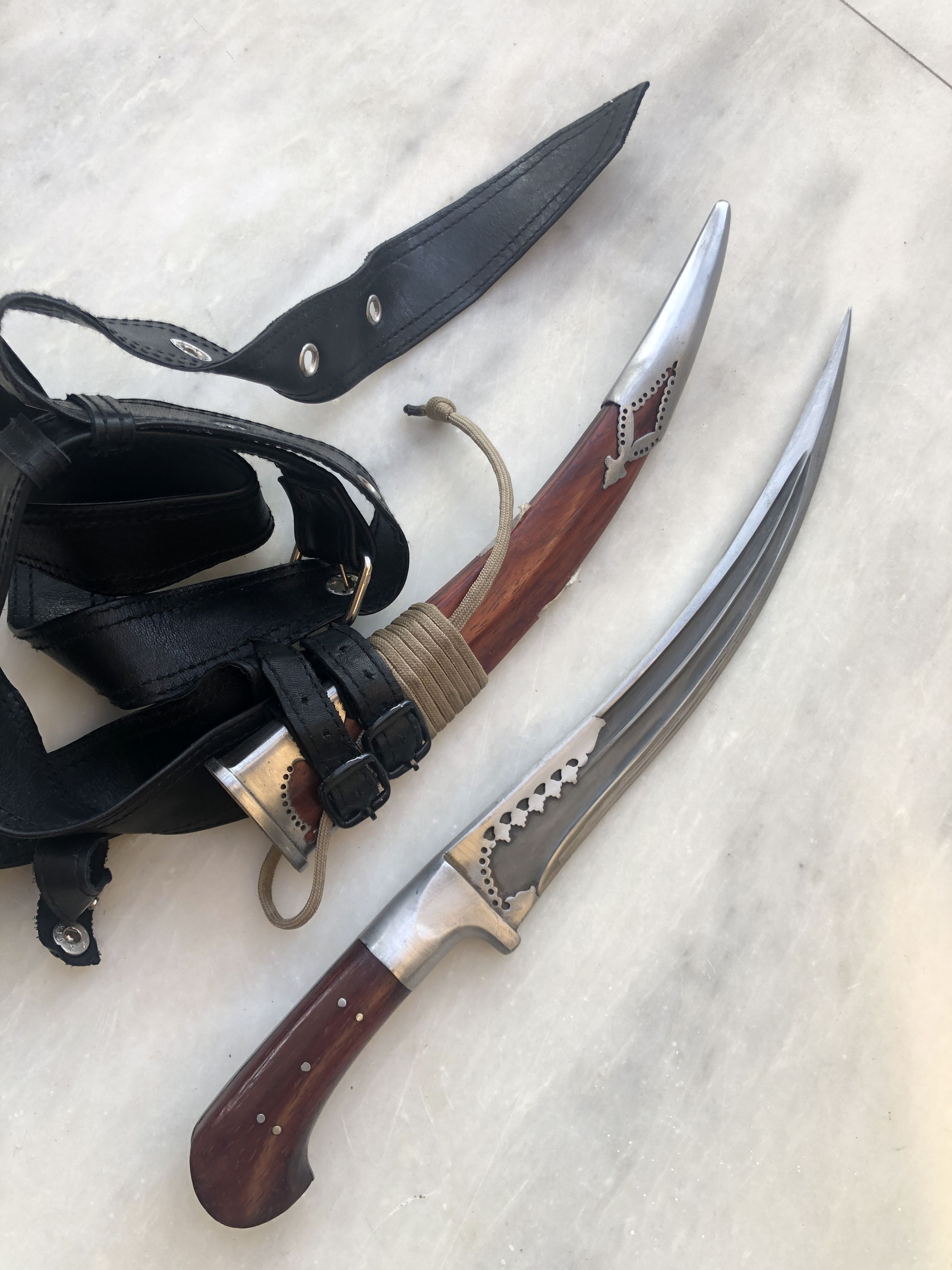 Pesh Kabz with curved blade and red sander sheath and handle.Made/Created