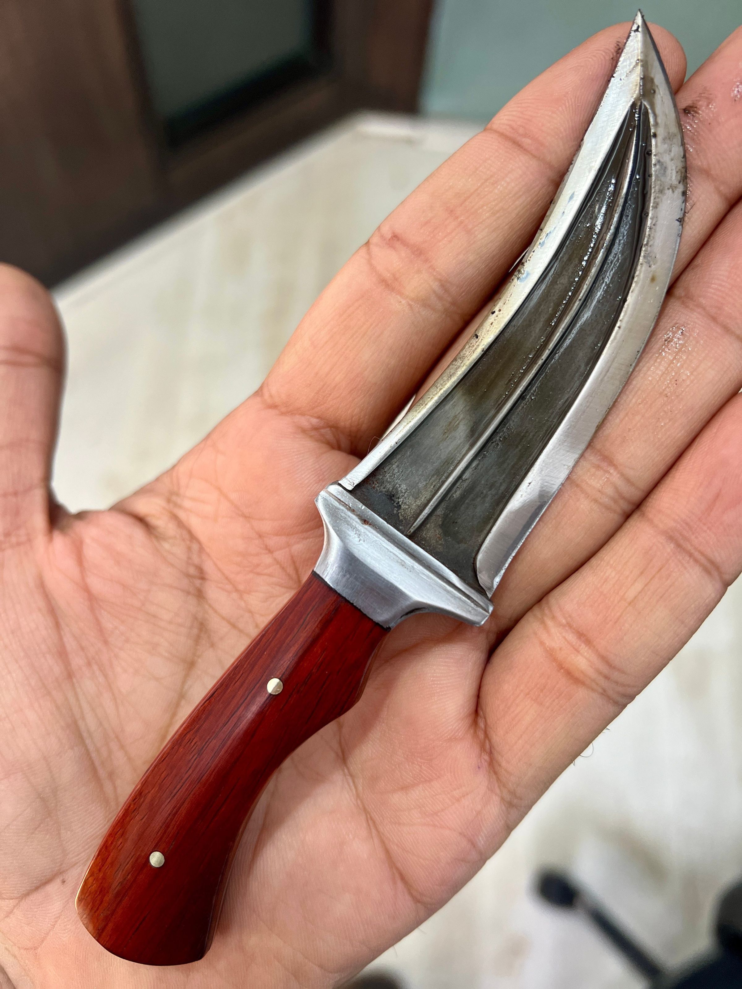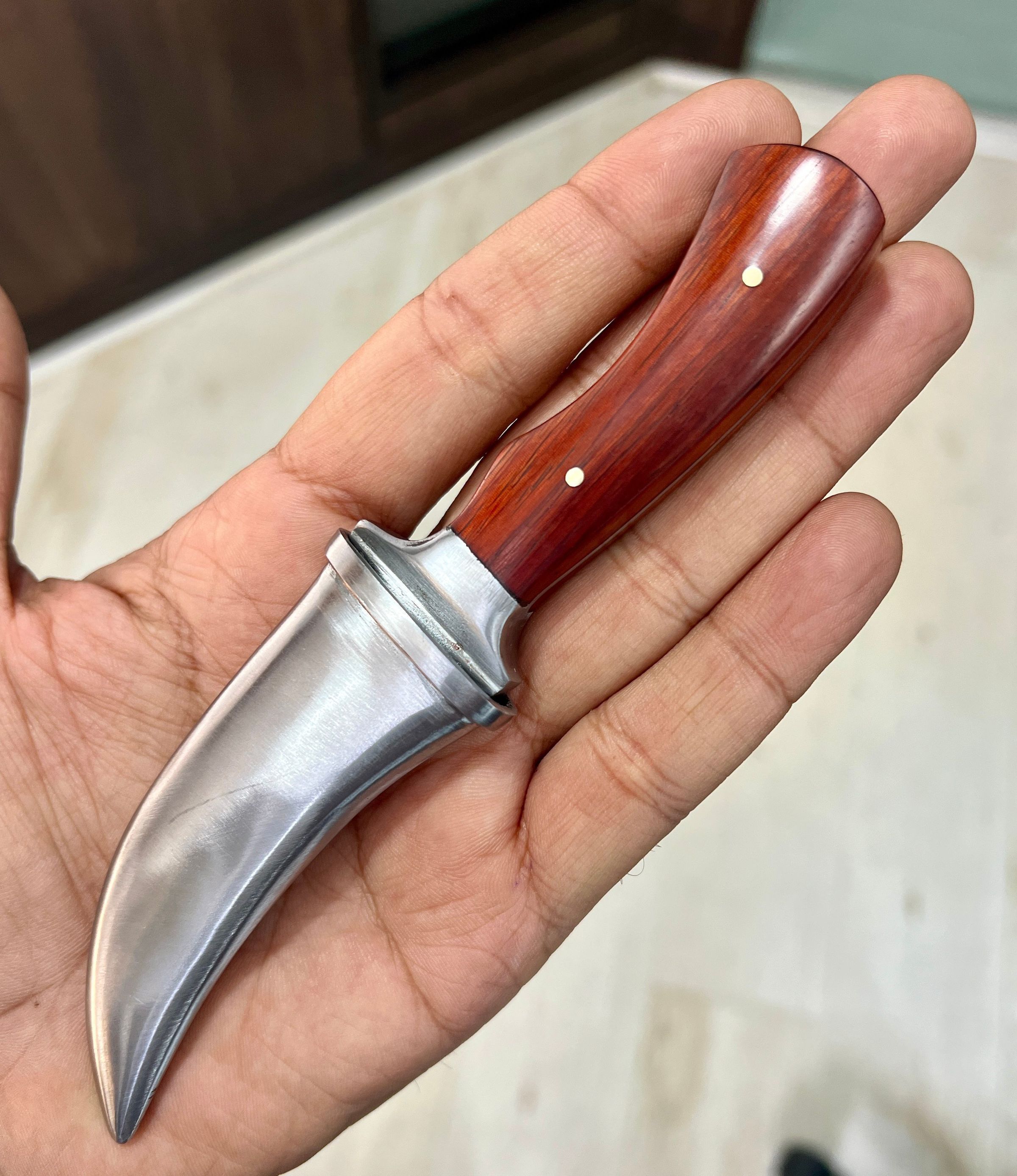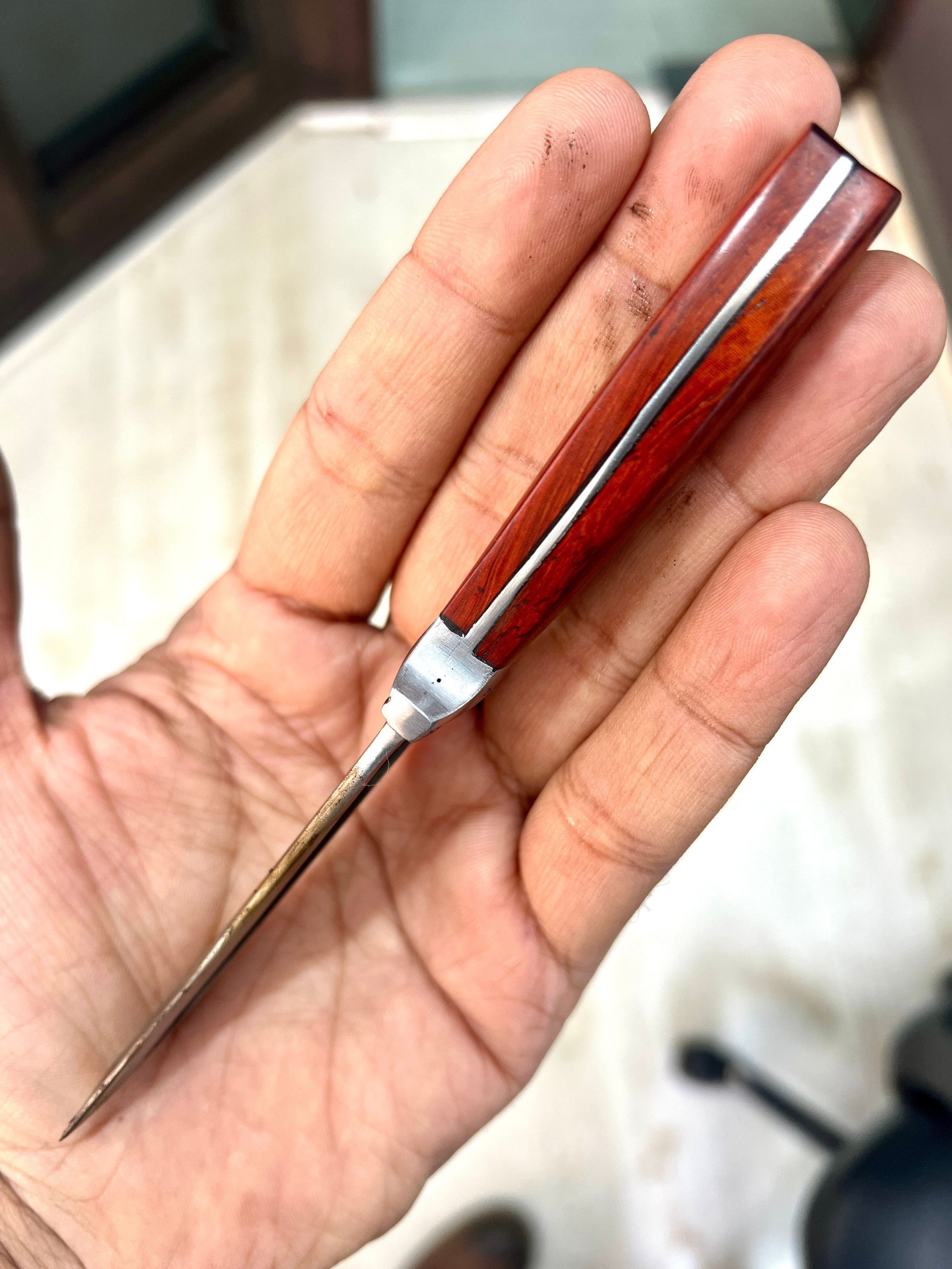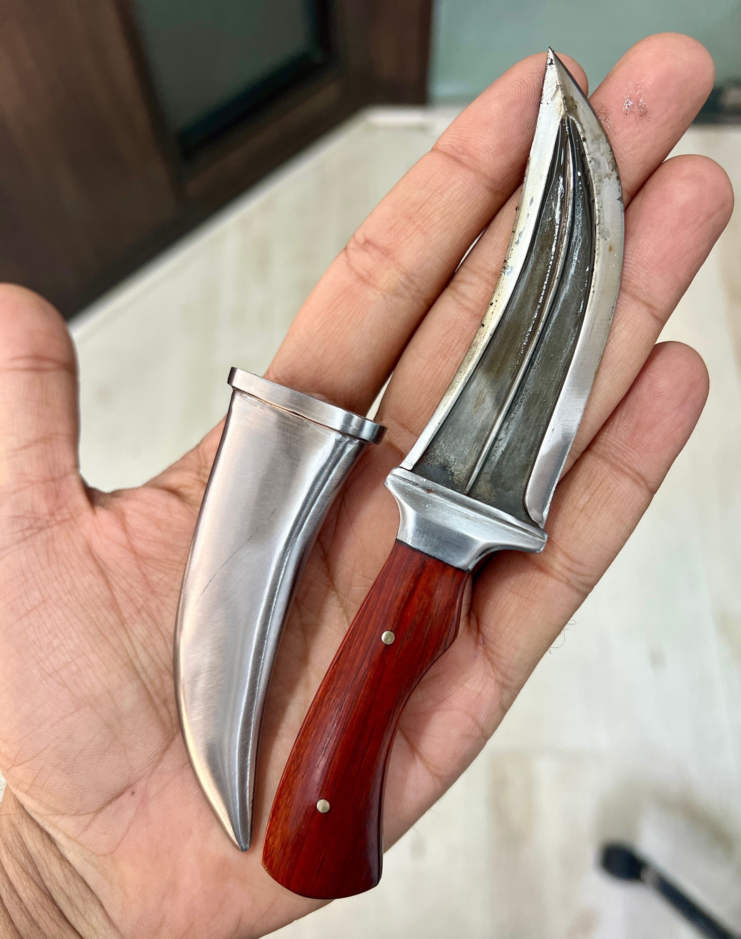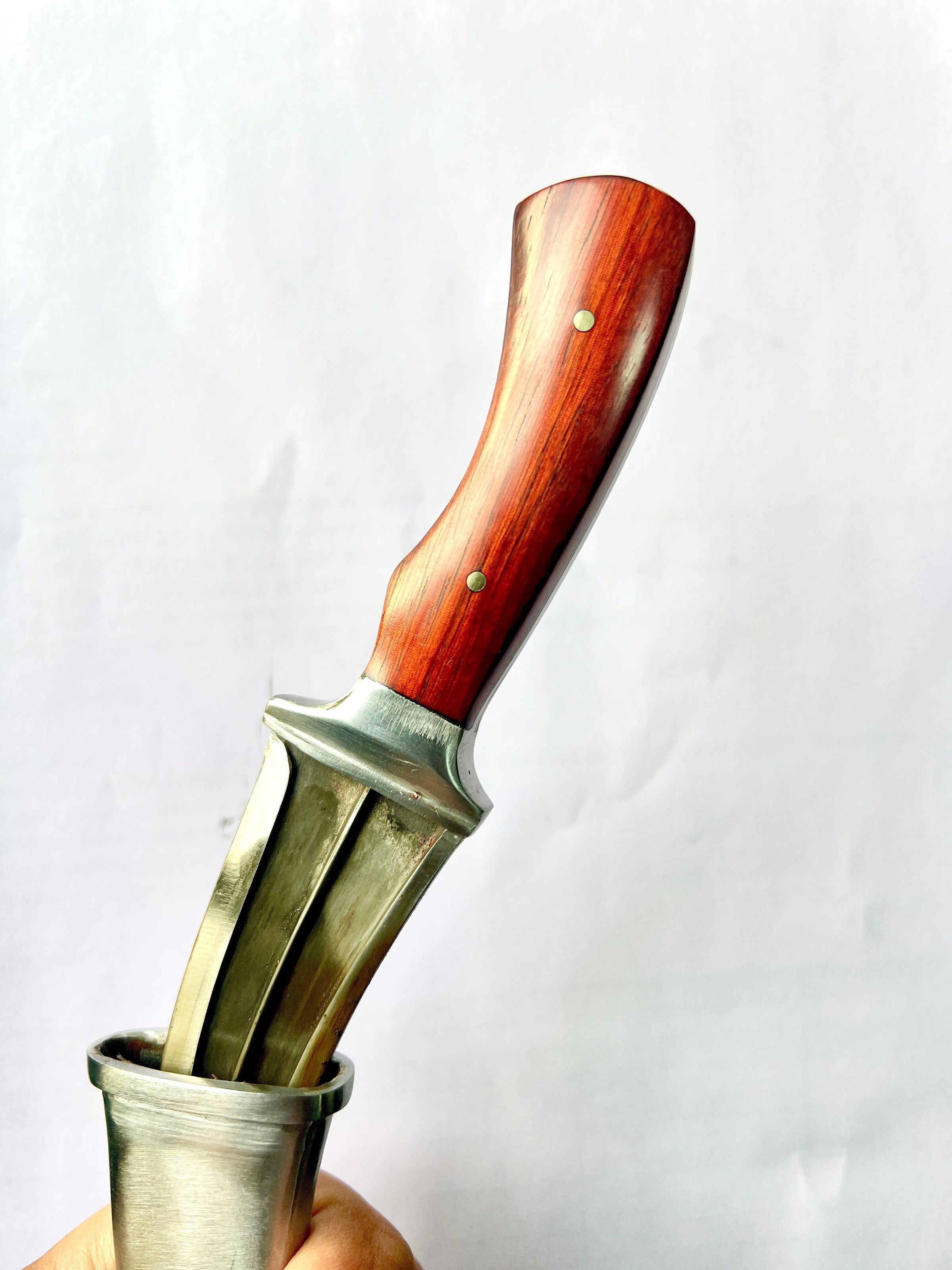 A Concelable steel sheath dagger with exotic red sander handle.Made/Created