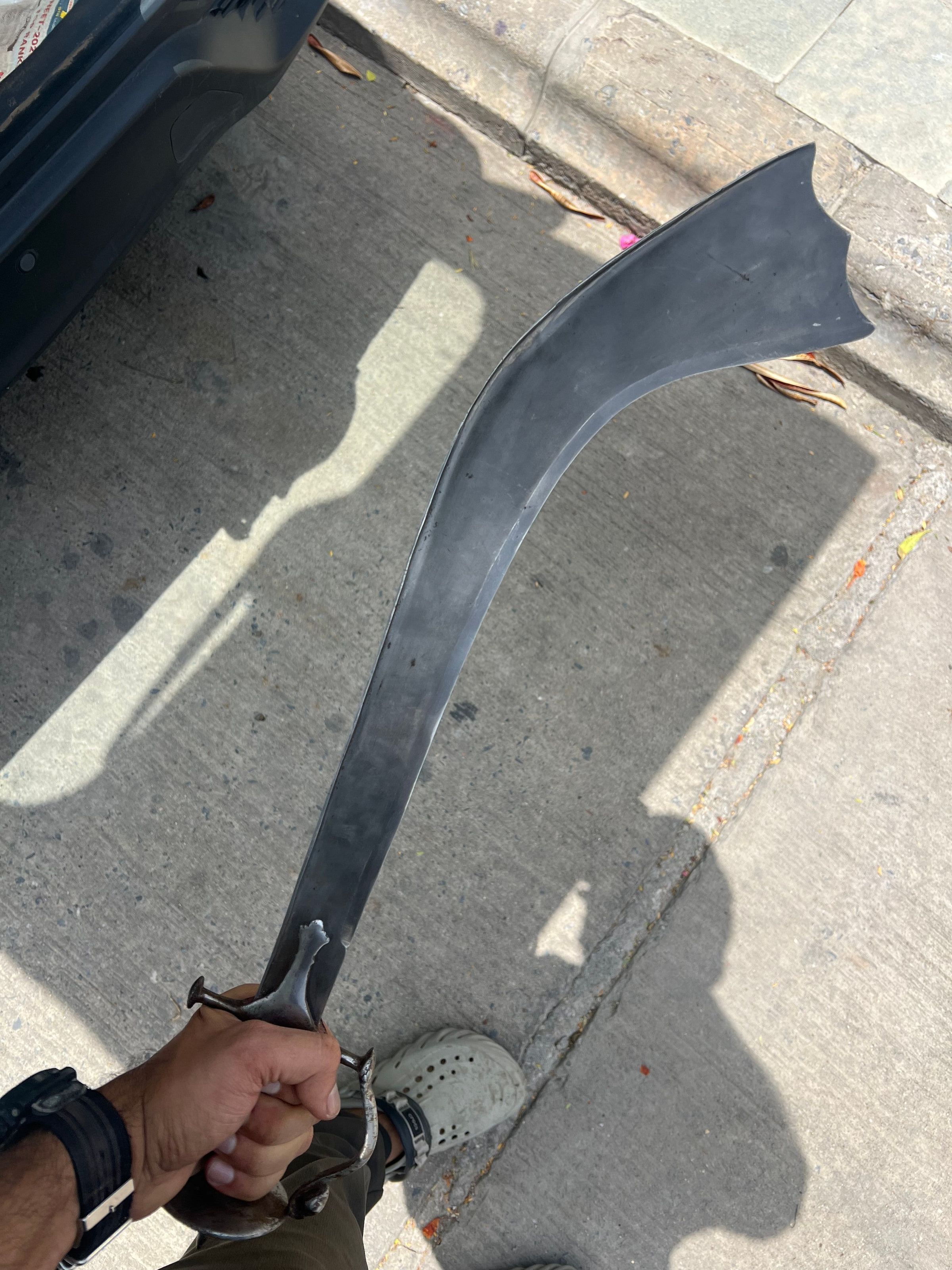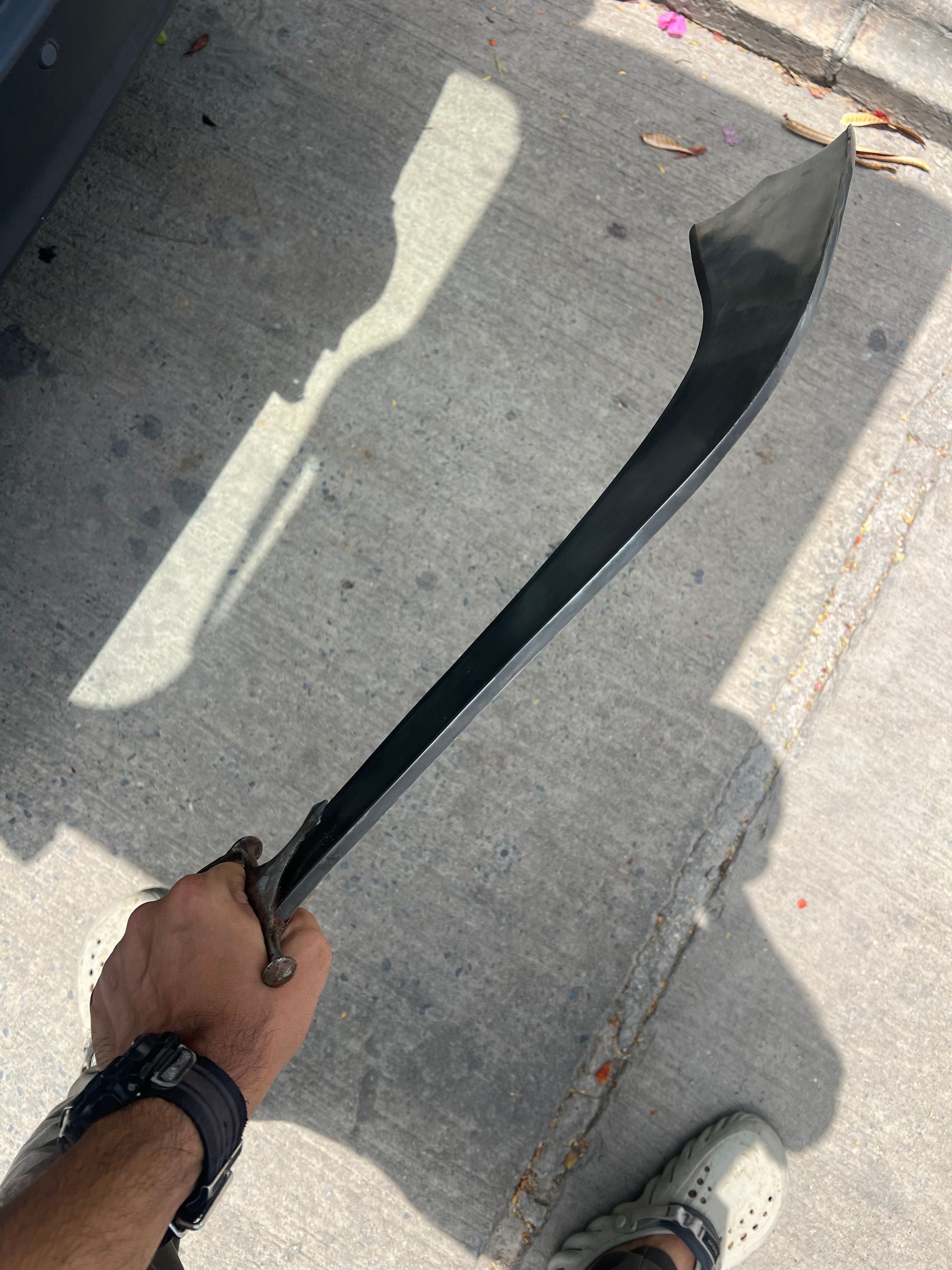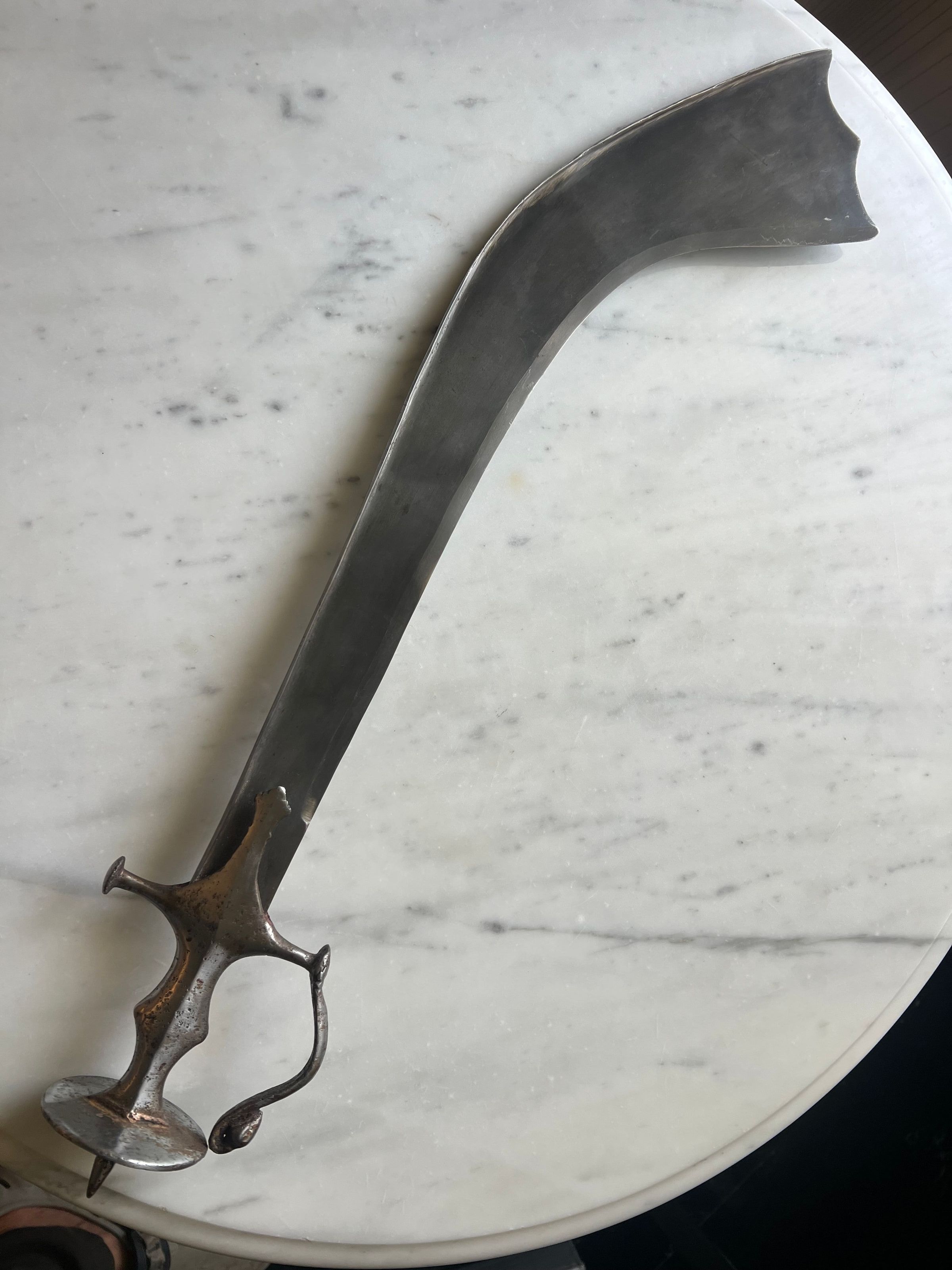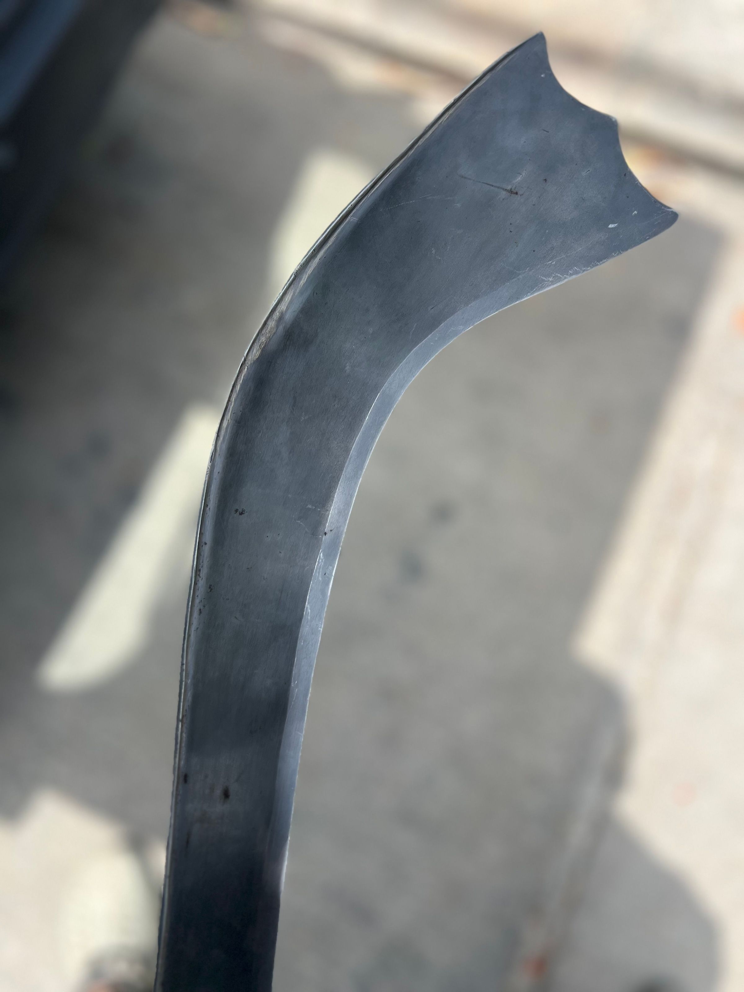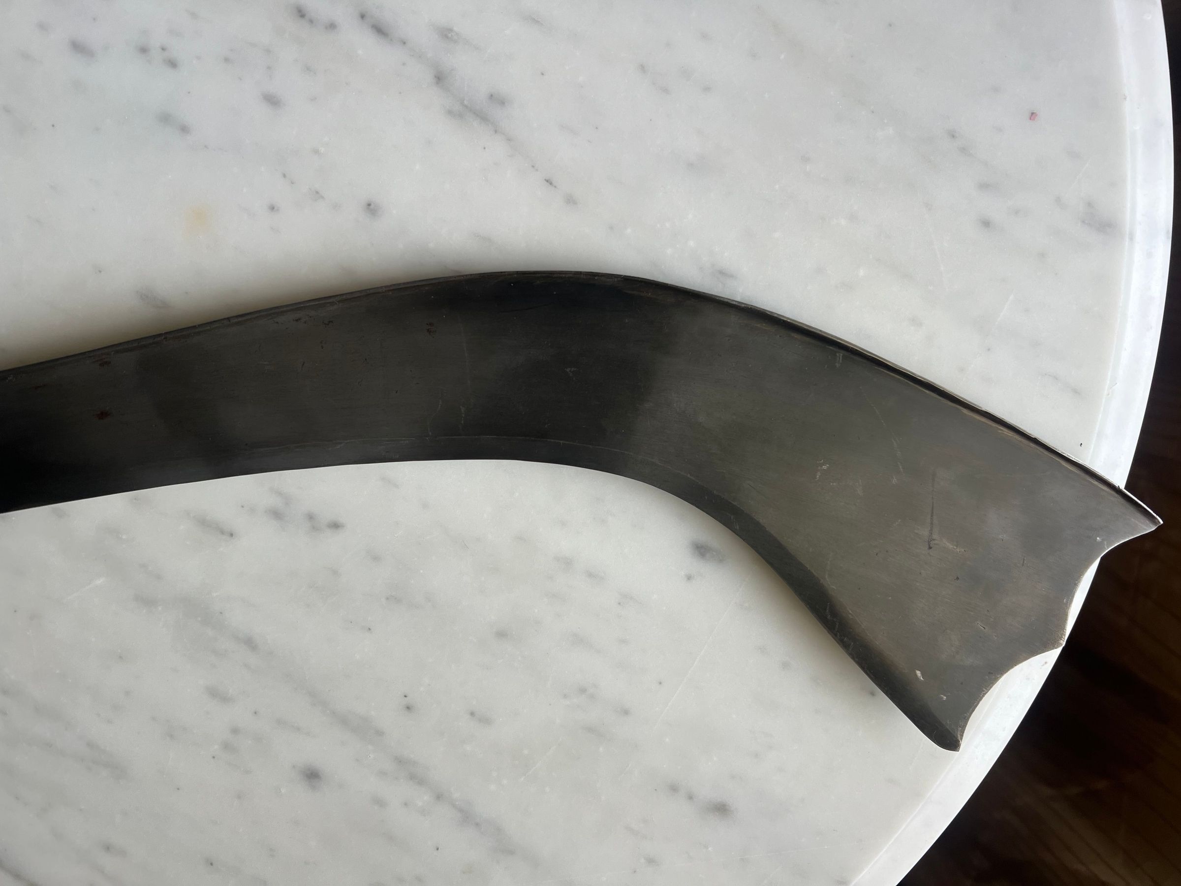 The kora is a unique Nepalese sword, traditionally associated with the Gurkhas, known for its forward-curving blade with a widened tip, making it resemble a maceMade/Created