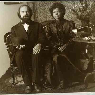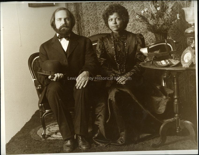Photo of a 1900's Business Man's Suit worn by Eric Pryne and an 1890's Wedding Dress worn by Olga Landing. Taken at the 'Fashion thru the Ages' Fashion Show, May 1977. OversizedLexicon