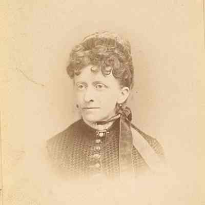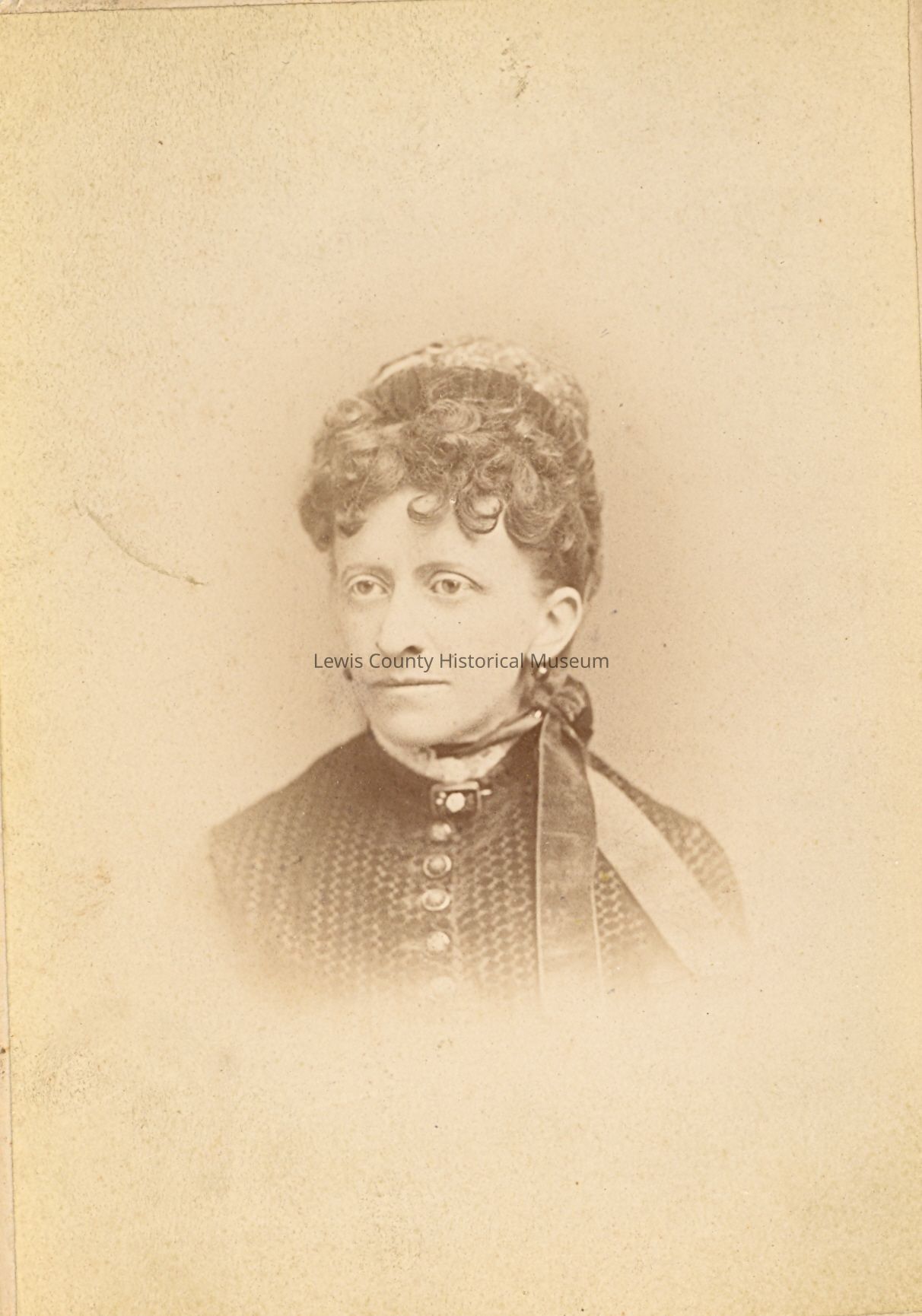 Portrait of an unidentified lady, ca.1900. Curled hair around front with bonnet that ties under chin.Lexicon