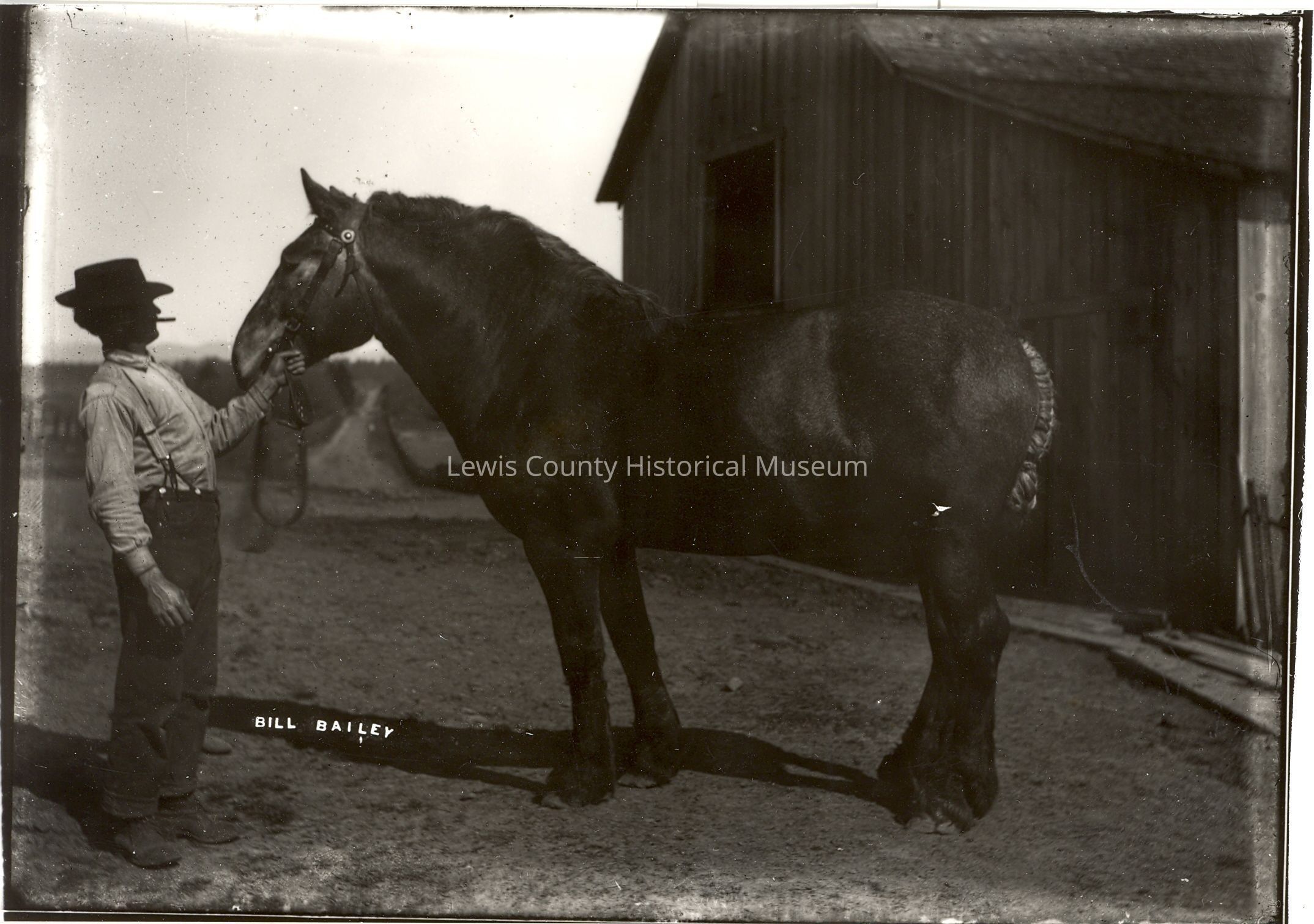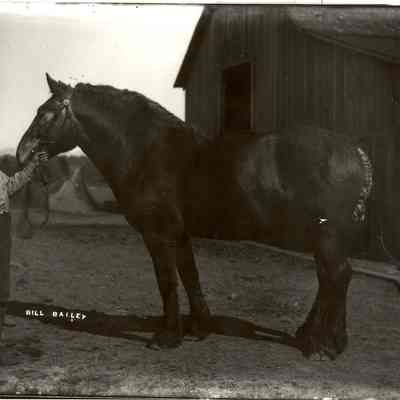 Bill Bailey with show horse in front of barn.Made/Created