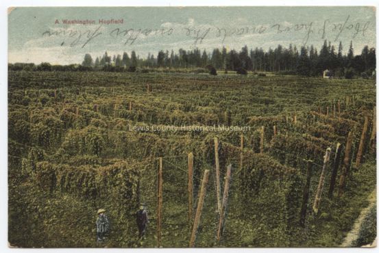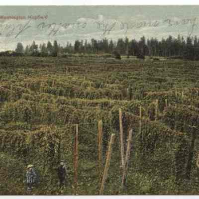 Color print card - A Washington hop field probably near Klaber. Postmarked 1909. 1¢ stampLexicon
